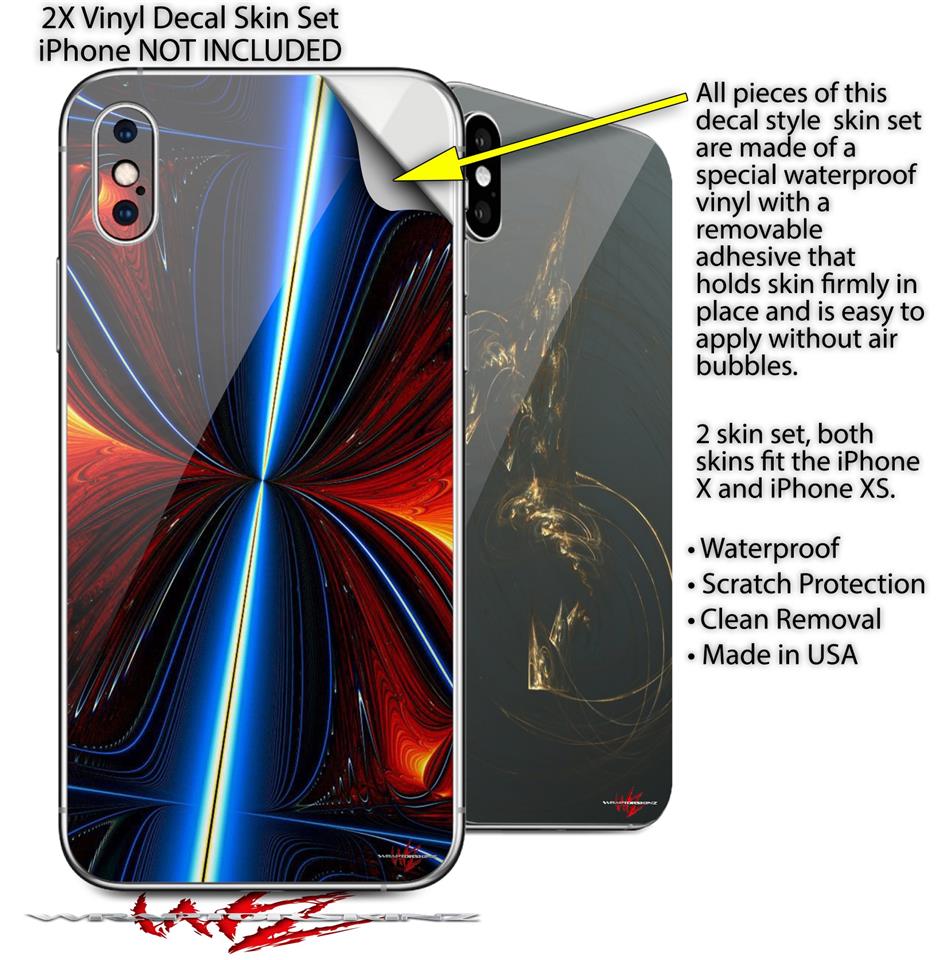 2 Decal style Skin Wraps set for Apple iPhone X and XS Quasar Fire