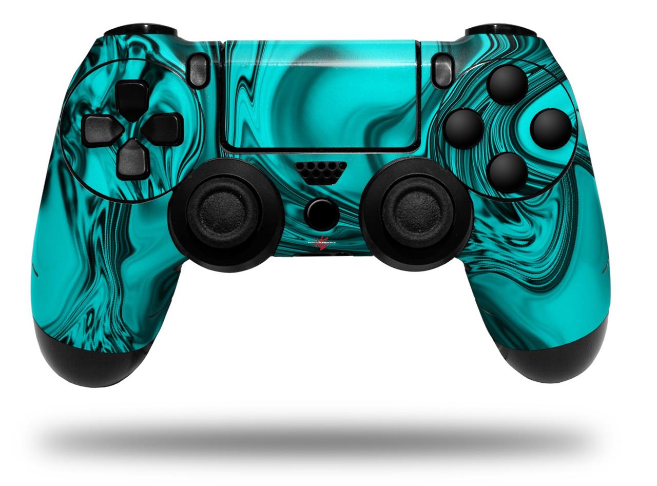 WraptorSkinz Skin compatible with Sony PS4 Dualshock Controller PlayStation 4 Original Slim and Pro Liquid Metal Chrome Neon Teal (CONTROLLER NOT INCLUDED)