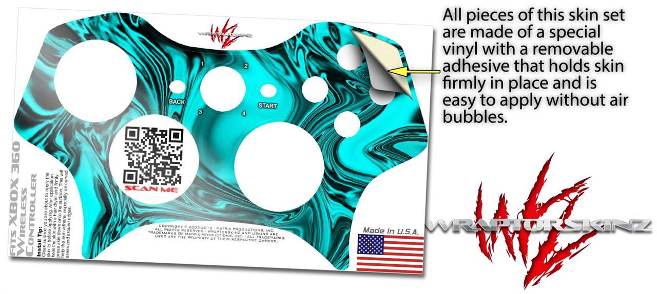 Decal Skin compatible with XBOX 360 Wireless Controller Liquid Metal Chrome Neon Teal (CONTROLLER NOT INCLUDED)