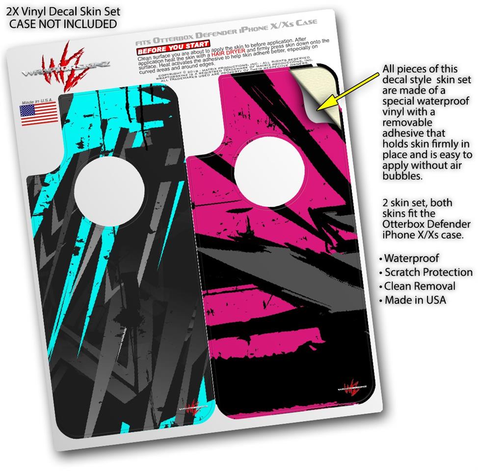 2x Decal style Skin Wrap Set compatible with Otterbox Defender iPhone X and Xs Case - Baja 0014 Neon Teal (CASE NOT INCLUDED)