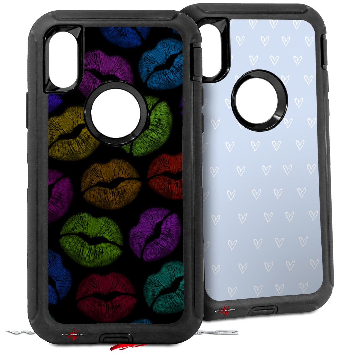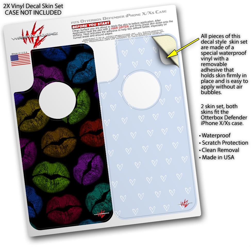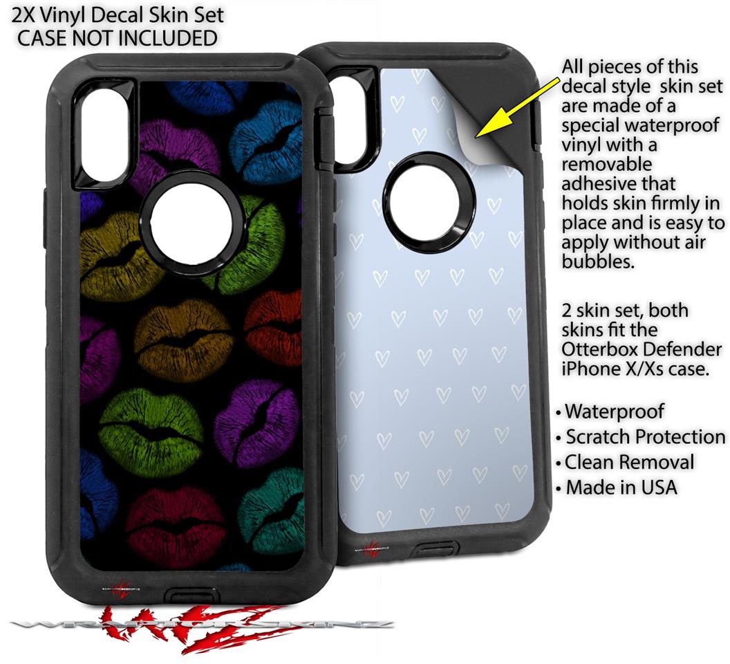 2x Decal style Skin Wrap Set compatible with Otterbox Defender iPhone X and Xs Case - Rainbow Lips Black (CASE NOT INCLUDED)