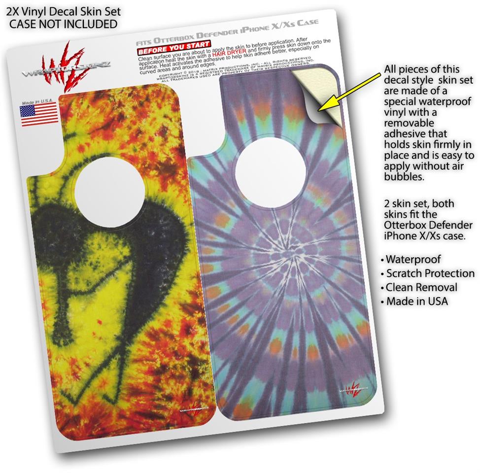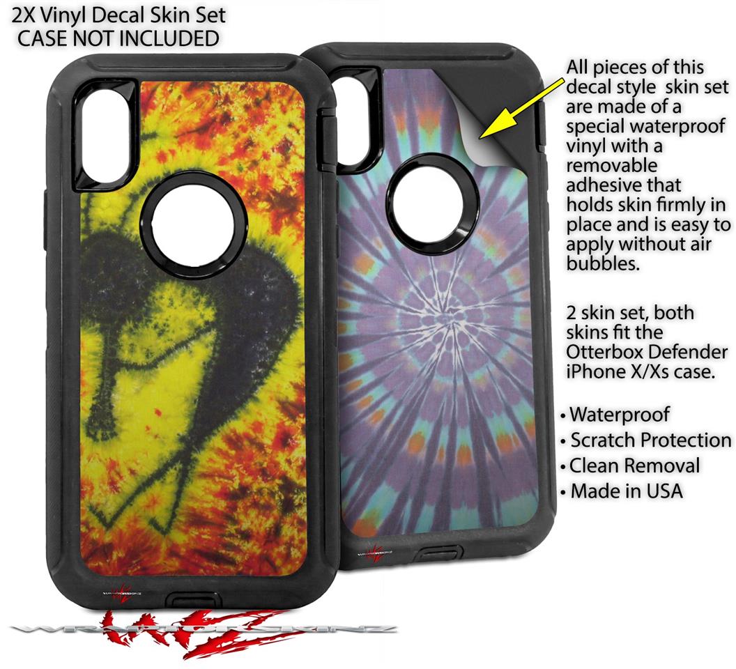 2x Decal style Skin Wrap Set compatible with Otterbox Defender iPhone X and Xs Case - Tie Dye Kokopelli (CASE NOT INCLUDED)