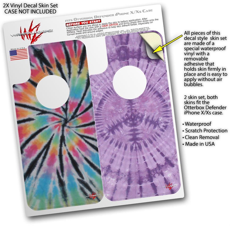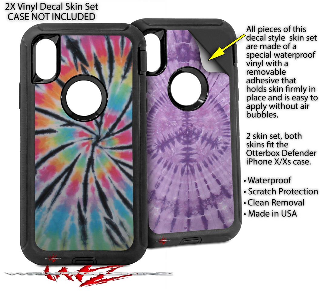 2x Decal style Skin Wrap Set compatible with Otterbox Defender iPhone X and Xs Case - Tie Dye Swirl 109 (CASE NOT INCLUDED)