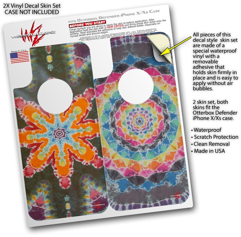 2x Decal style Skin Wrap Set compatible with Otterbox Defender iPhone X and Xs Case - Tie Dye Star 103 (CASE NOT INCLUDED)