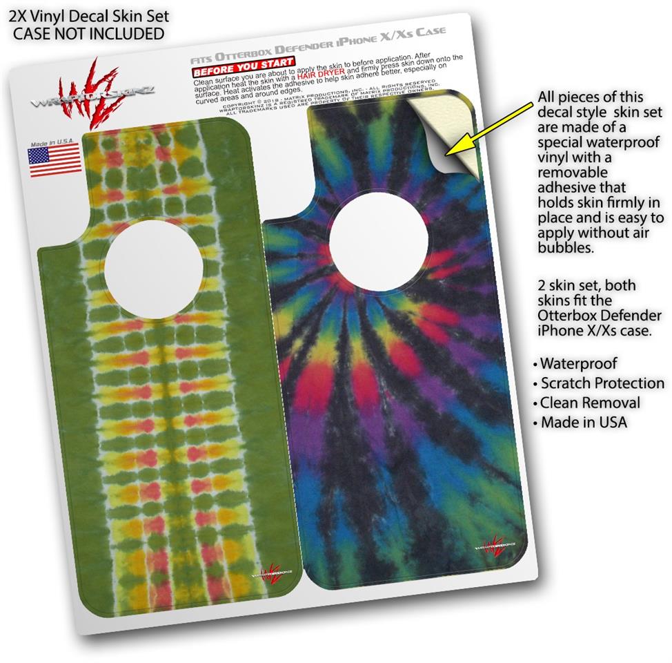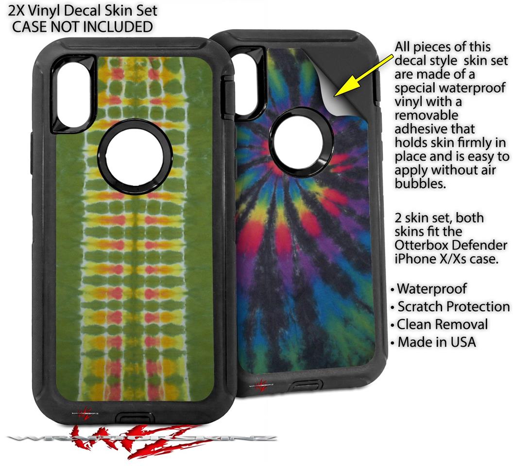 2x Decal style Skin Wrap Set compatible with Otterbox Defender iPhone X and Xs Case - Tie Dye Spine 101 (CASE NOT INCLUDED)