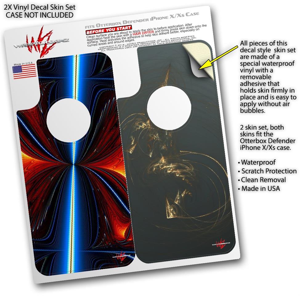 2x Decal style Skin Wrap Set compatible with Otterbox Defender iPhone X and Xs Case - Quasar Fire (CASE NOT INCLUDED)