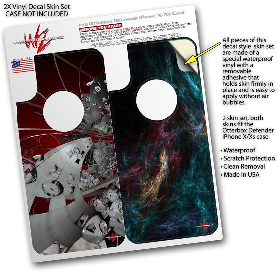 2x Decal style Skin Wrap Set compatible with Otterbox Defender iPhone X and Xs Case - Ultra Fractal (CASE NOT INCLUDED)