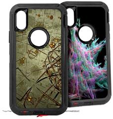 2x Decal style Skin Wrap Set compatible with Otterbox Defender iPhone X and Xs Case - Cartographic (CASE NOT INCLUDED)