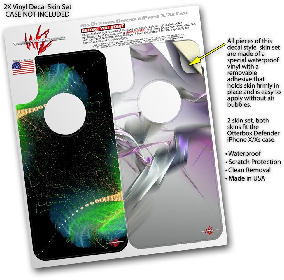 WraptorSkinz® skin wraps compatible with Otterbox Defender iPhone X / Xs Cases are printed using superb photo quality designs and vibrant colors printed with special fade resistant inks that last even in direct sun for years. WraptorSkinz are a composite of two layers of commercial grade materials. The bottom layer is a soft, flexible vinyl with a special removable adhesive that is easily positioned, applied without air bubbles. Next, we print the bottom layer with UV protected, fade resistant inks that deliver superb photo quality designs in vibrant colors. Finally, we bond a professional grade laminate over the entire skin adding a glossy protective finish. This product is not affiliated with or endorsed by Otterbox.