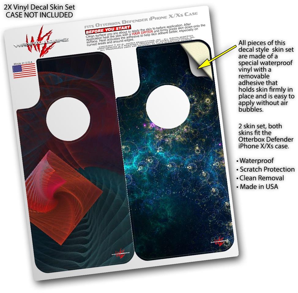 WraptorSkinz® skin wraps compatible with Otterbox Defender iPhone X / Xs Cases are printed using superb photo quality designs and vibrant colors printed with special fade resistant inks that last even in direct sun for years. WraptorSkinz are a composite of two layers of commercial grade materials. The bottom layer is a soft, flexible vinyl with a special removable adhesive that is easily positioned, applied without air bubbles. Next, we print the bottom layer with UV protected, fade resistant inks that deliver superb photo quality designs in vibrant colors. Finally, we bond a professional grade laminate over the entire skin adding a glossy protective finish. This product is not affiliated with or endorsed by Otterbox.
