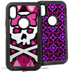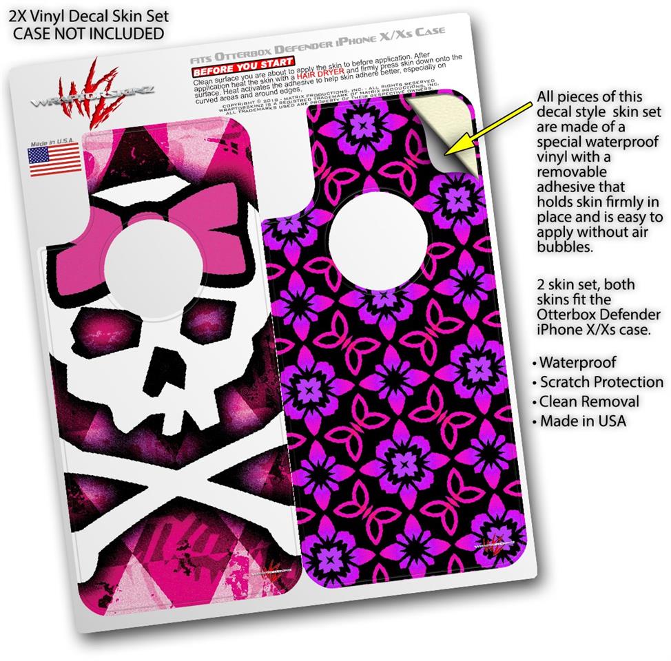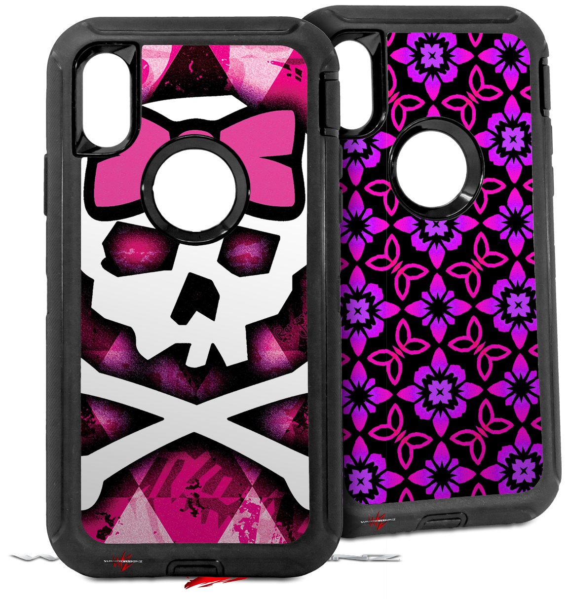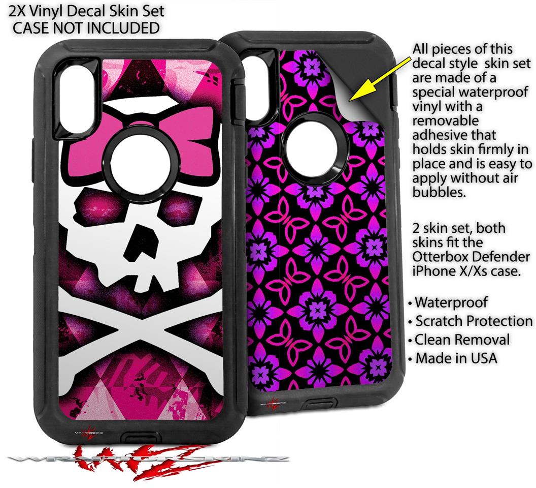 2x Decal style Skin Wrap Set compatible with Otterbox Defender iPhone X and Xs Case - Pink Bow Princess (CASE NOT INCLUDED)