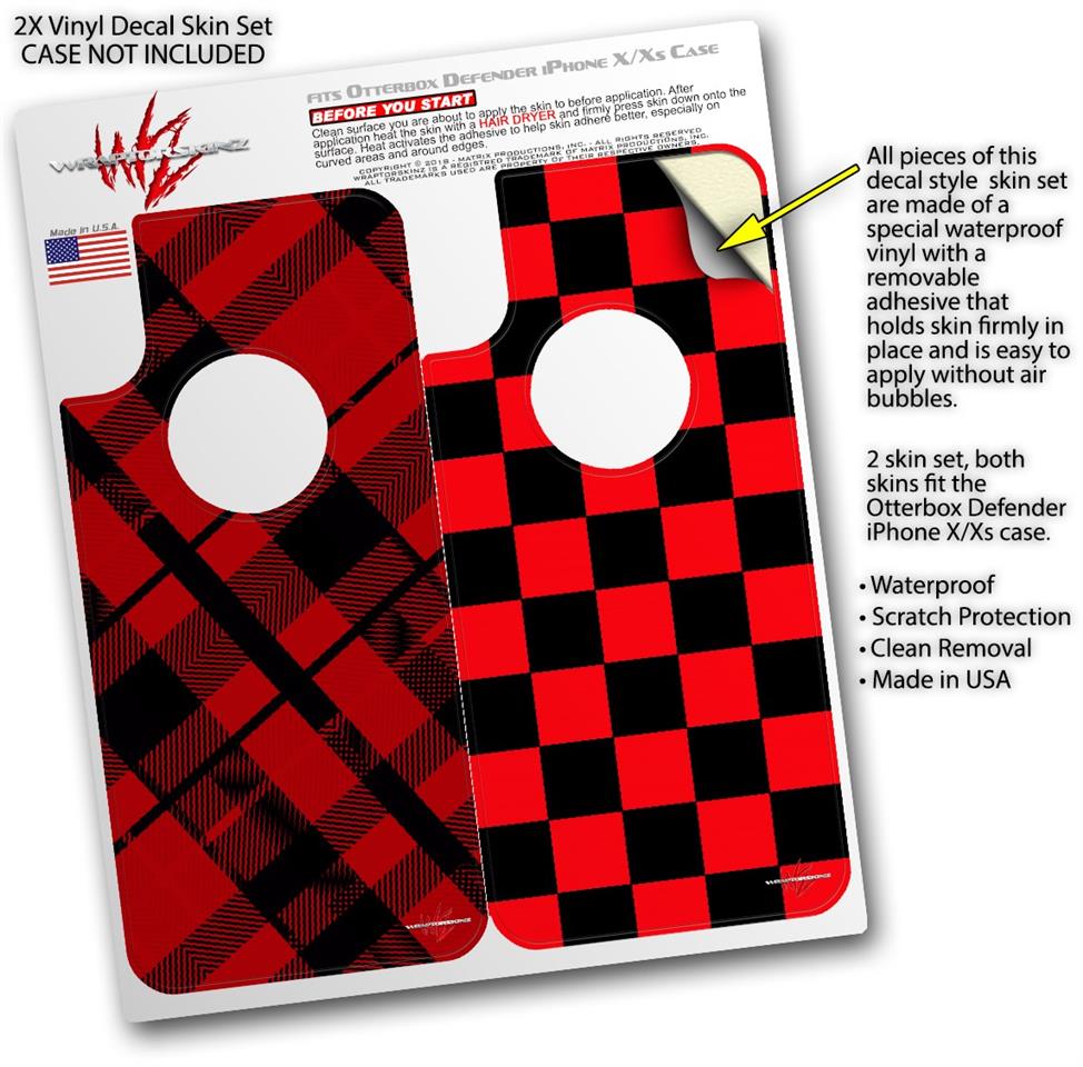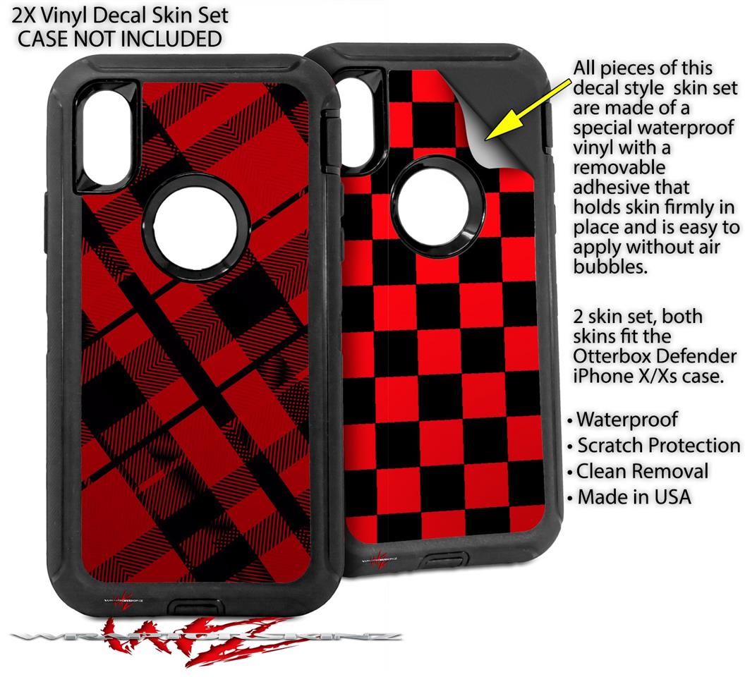 2x Decal style Skin Wrap Set compatible with Otterbox Defender iPhone X and Xs Case - Red Plaid (CASE NOT INCLUDED)