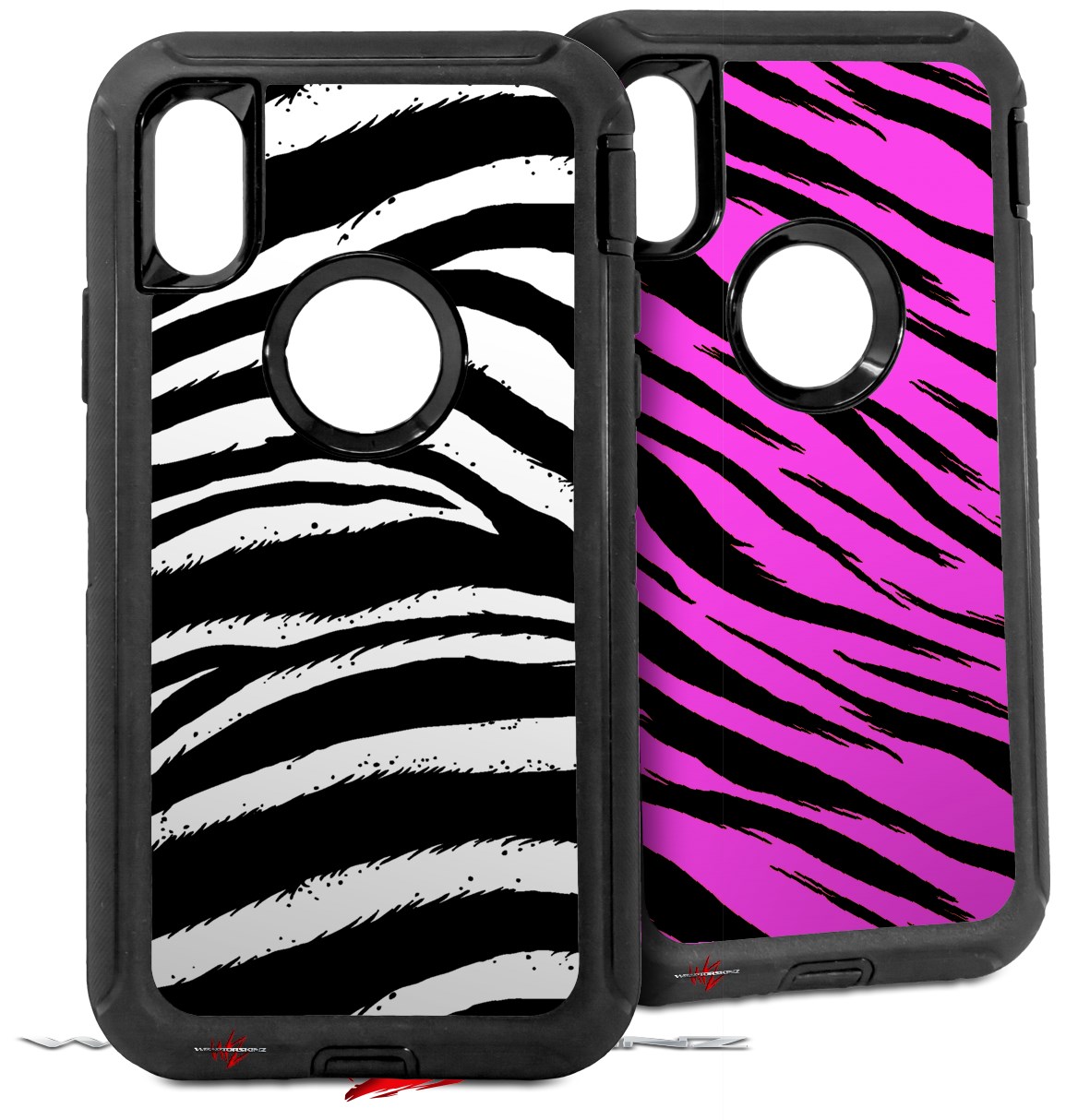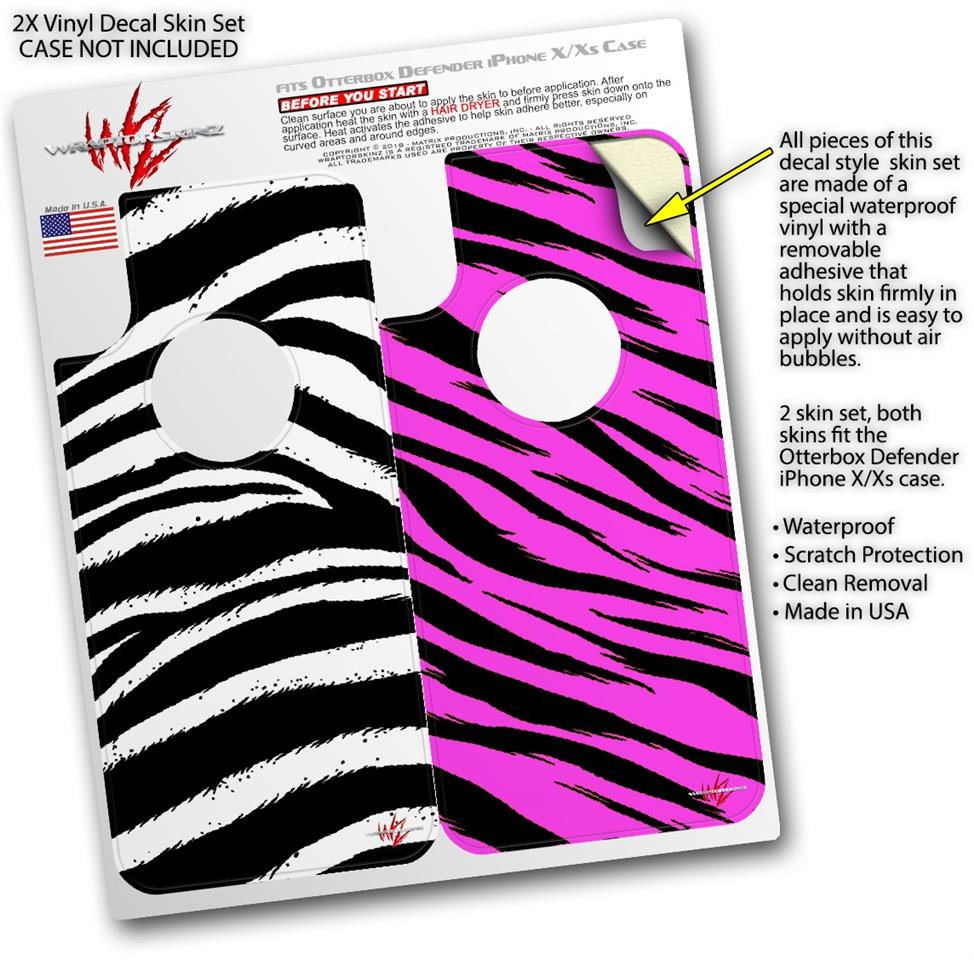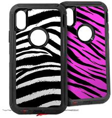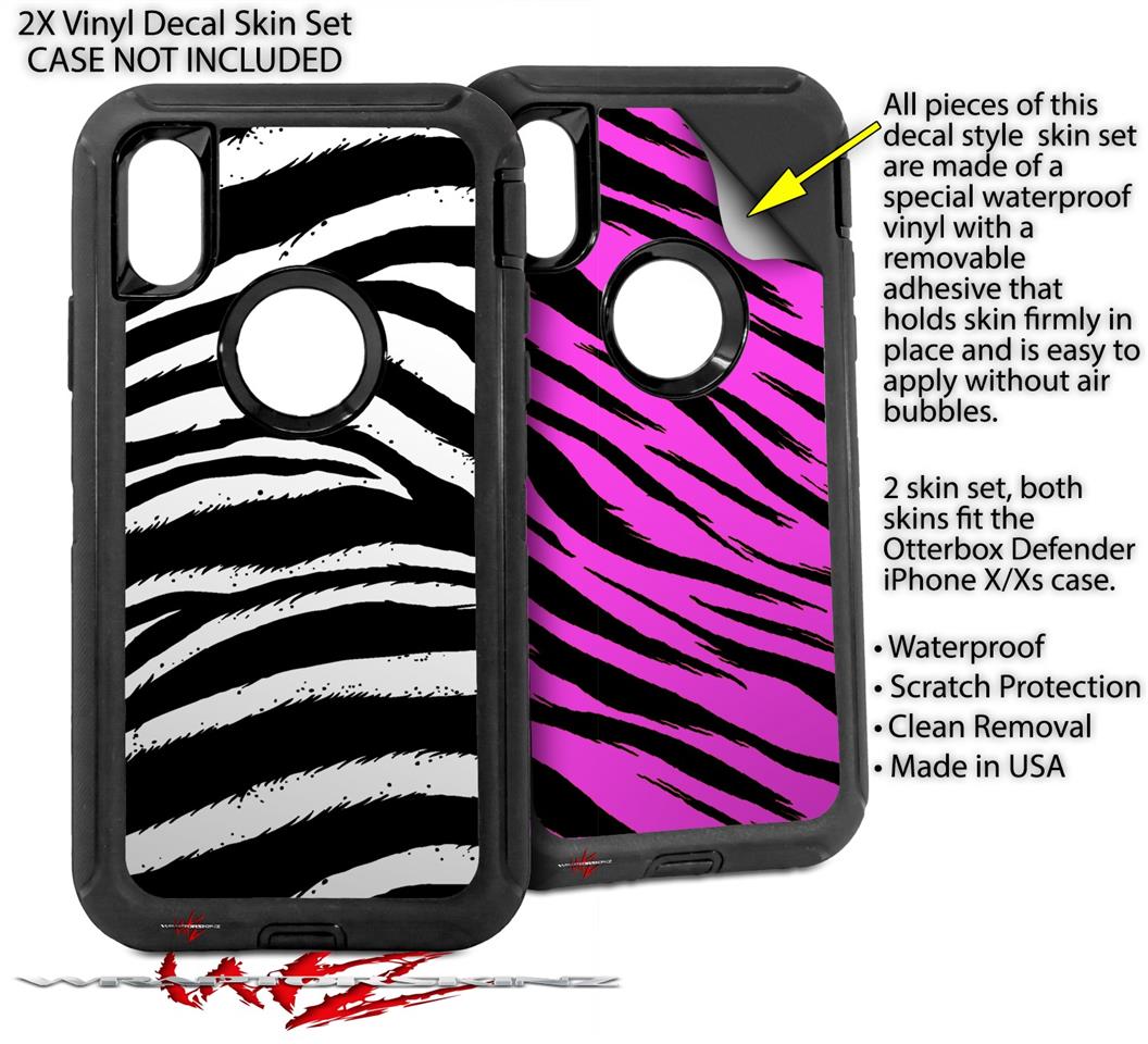 2x Decal style Skin Wrap Set compatible with Otterbox Defender iPhone X and Xs Case - Zebra (CASE NOT INCLUDED)