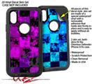 2x Decal style Skin Wrap Set compatible with Otterbox Defender iPhone X and Xs Case - Purple Star Checkerboard (CASE NOT INCLUDED)