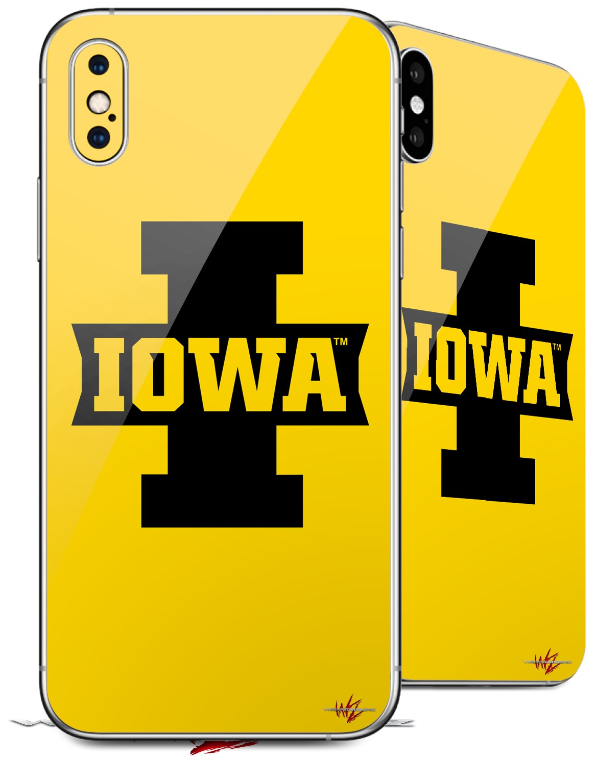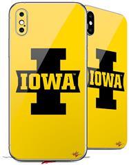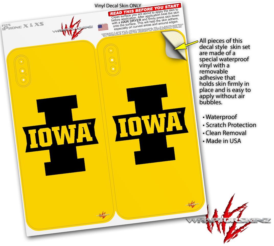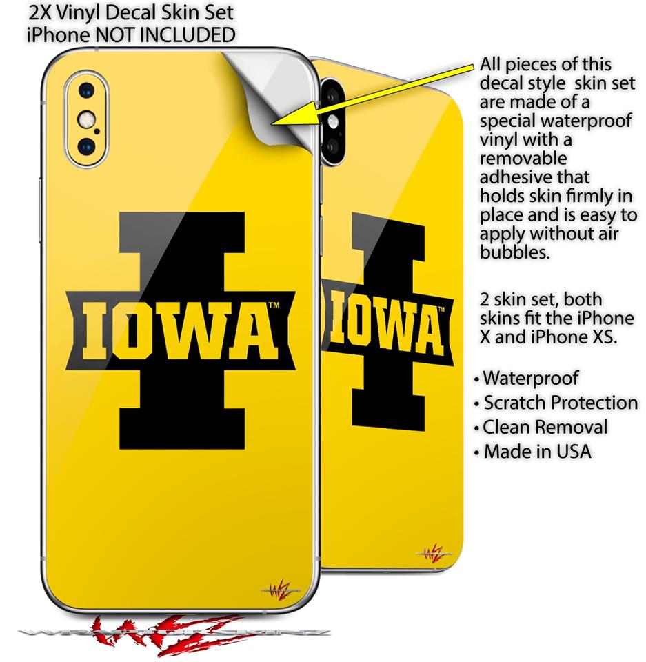2 Decal style Skin Wraps set compatible with Apple iPhone X and XS Iowa Hawkeyes 04 Black on Gold