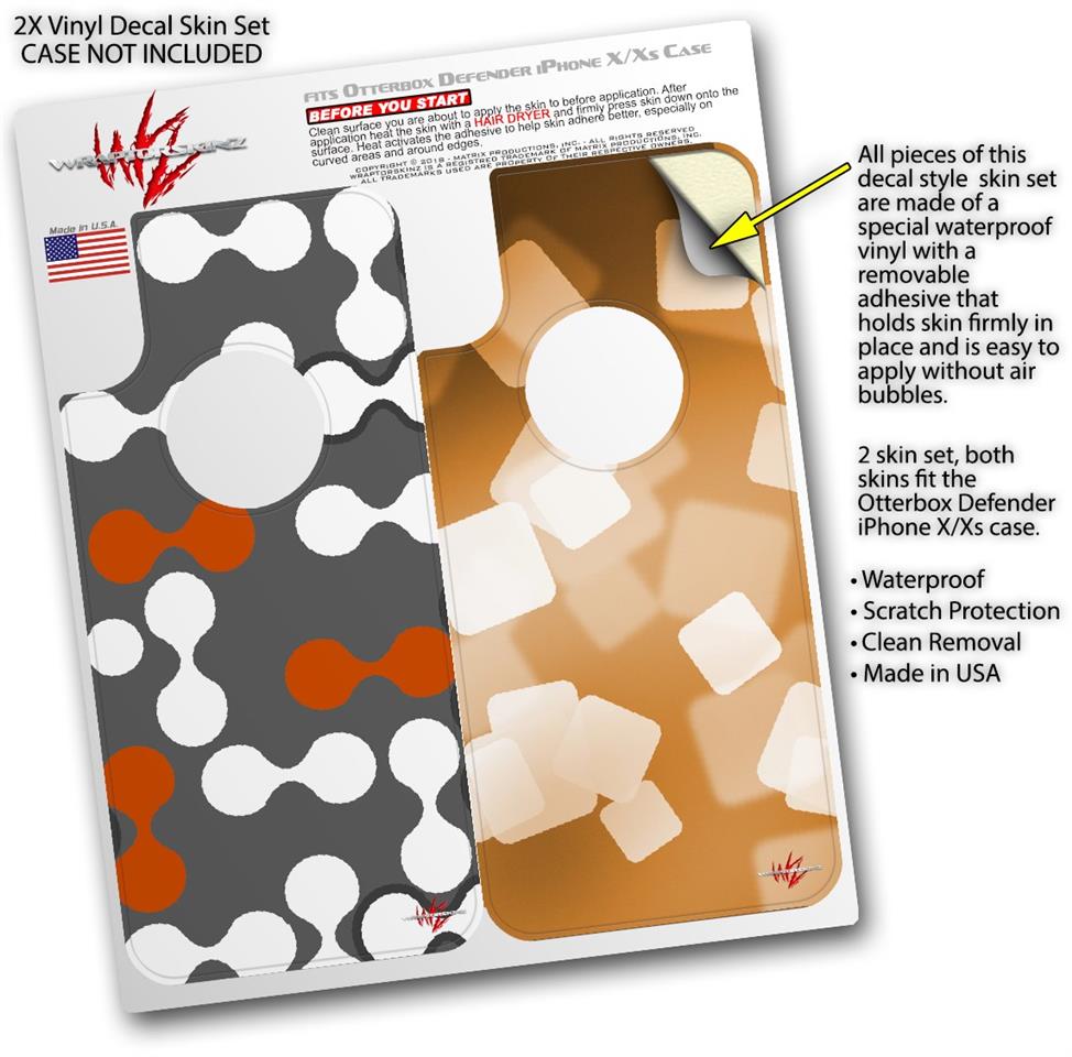 2x Decal style Skin Wrap Set compatible with Otterbox Defender iPhone X and Xs Case - Locknodes 04 Burnt Orange (CASE NOT INCLUDED)