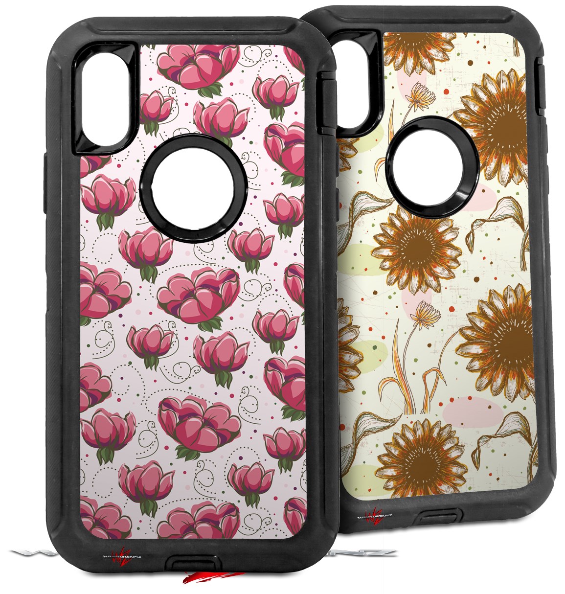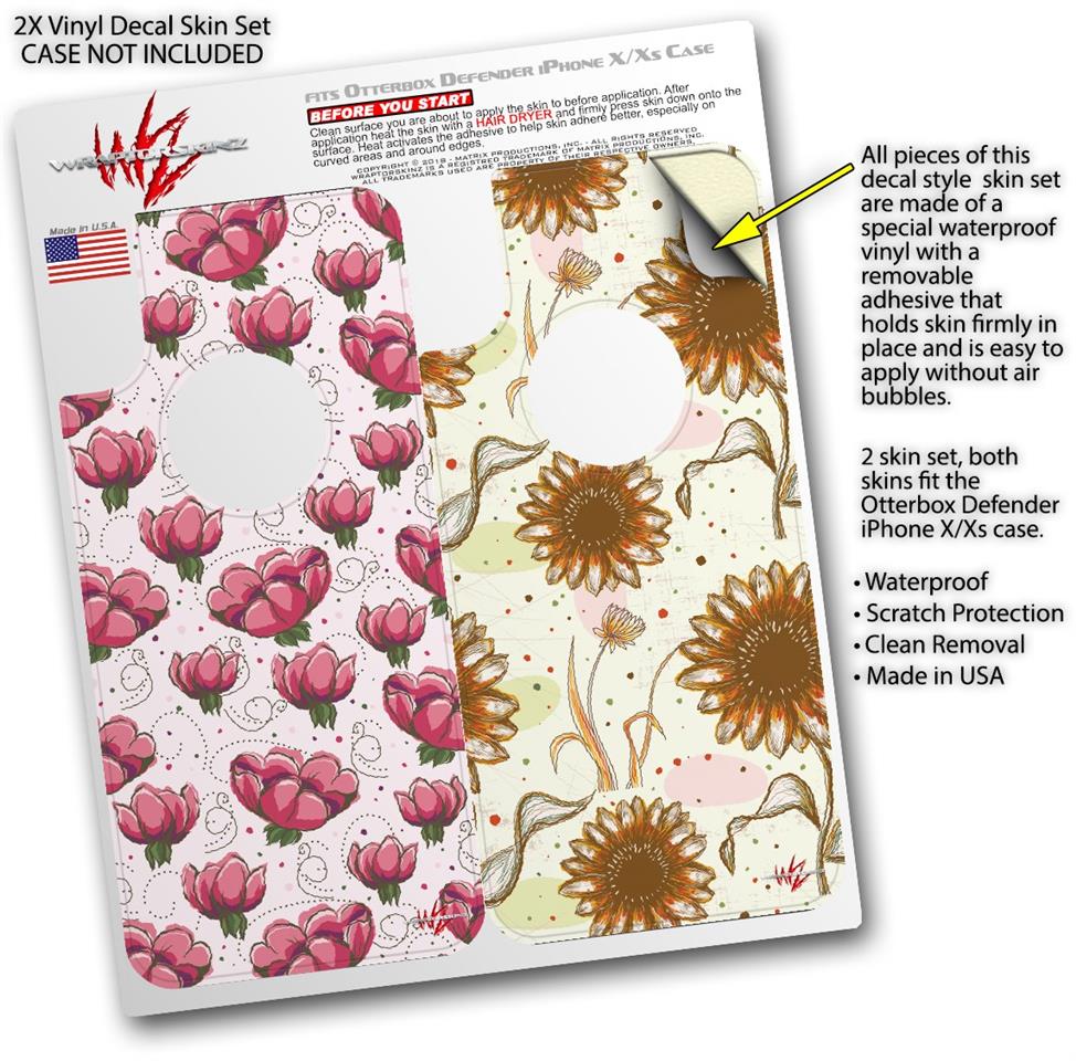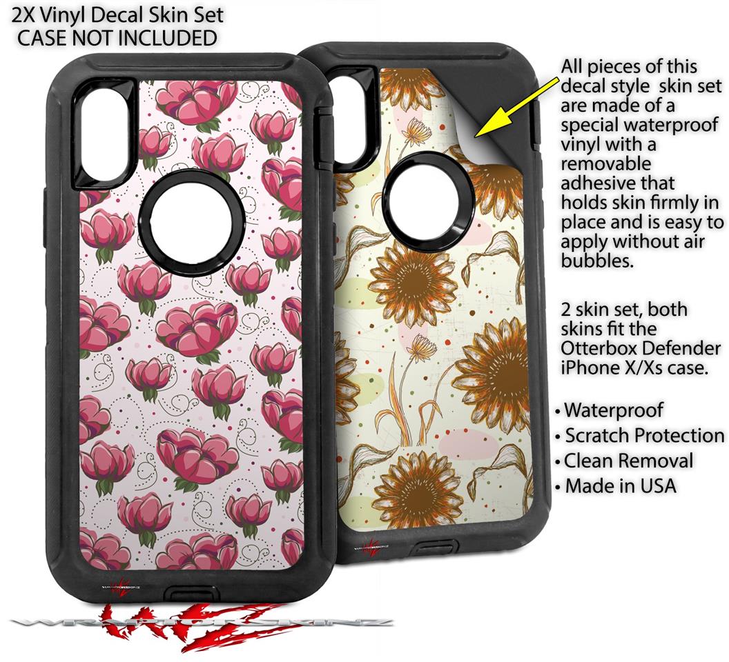 2x Decal style Skin Wrap Set compatible with Otterbox Defender iPhone X and Xs Case - Flowers Pattern 16 (CASE NOT INCLUDED)