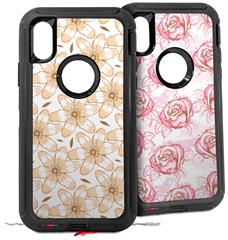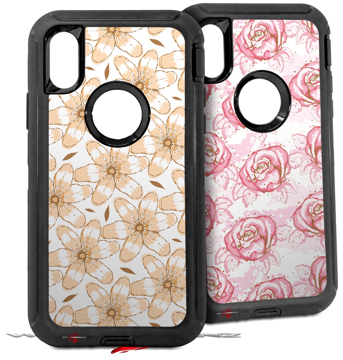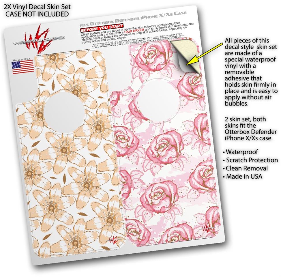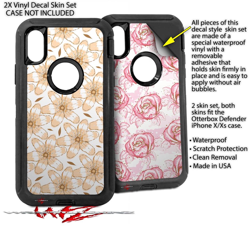 2x Decal style Skin Wrap Set compatible with Otterbox Defender iPhone X and Xs Case - Flowers Pattern 15 (CASE NOT INCLUDED)