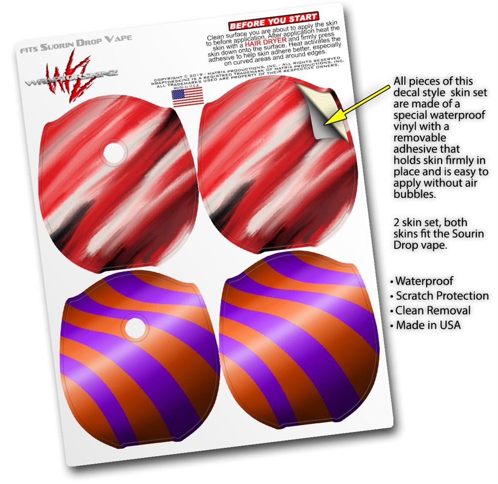 Skin Decal Wrap 2 Pack compatible with Suorin Drop Paint Blend Red VAPE NOT INCLUDED