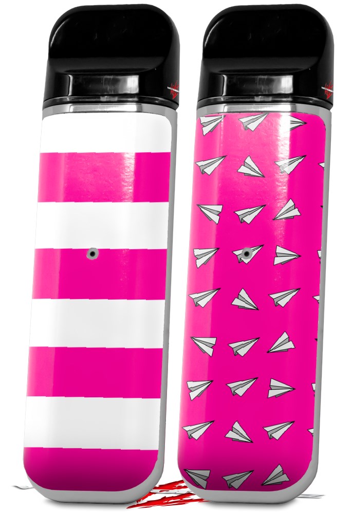 Skin Decal Wrap 2 Pack for Smok Novo v1 Psycho Stripes Hot Pink and White VAPE NOT INCLUDED