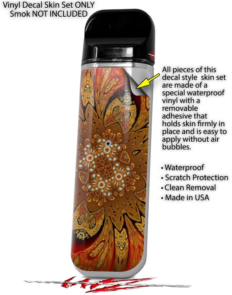 WraptorSkinz® skin wraps are printed using superb photo quality designs and vibrant colors printed with special fade resistant inks that last even in direct sun for years. WraptorSkinz are a composite of two layers of commercial grade materials. The bottom layer is a soft, flexible vinyl with a special removable adhesive that is easily positioned, applied without air bubbles. Next we print the bottom layer with UV protected, fade resistant inks that deliver superb photo quality designs in vibrant colors. Last, we bond a professional grade laminate over the entire skin adding a glossy protective finish. This product is not affiliated with or endorsed by the Smok brand.