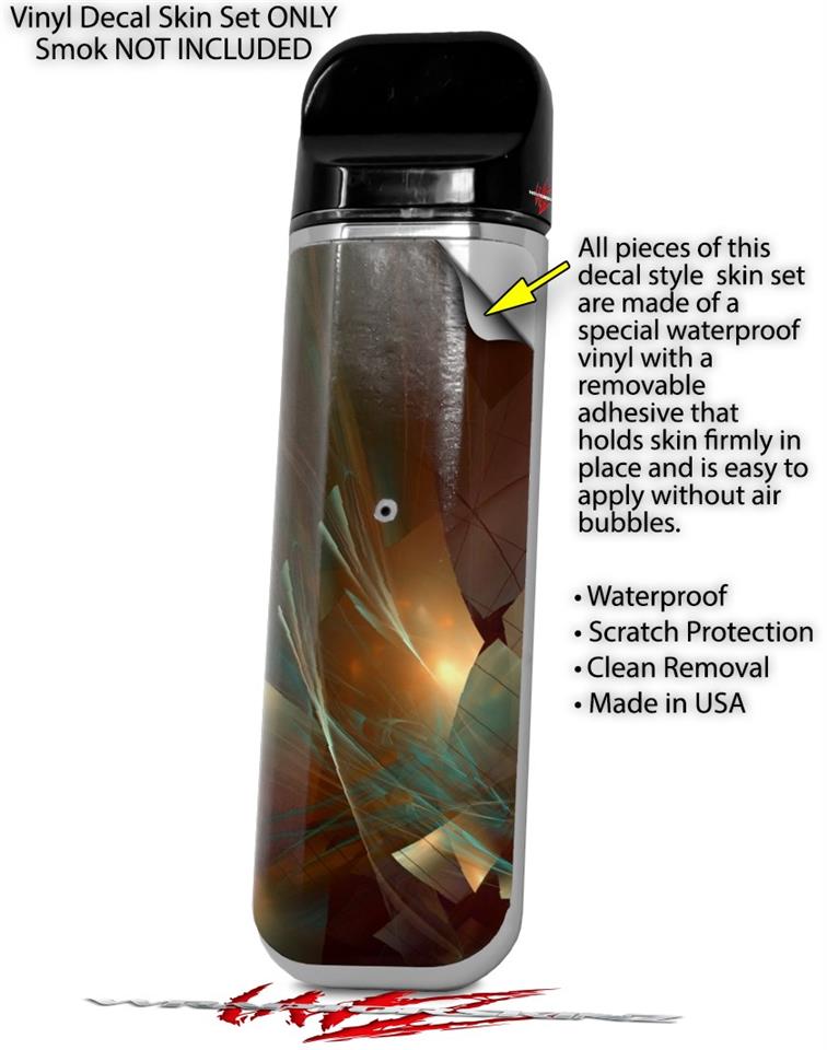 WraptorSkinz® skin wraps are printed using superb photo quality designs and vibrant colors printed with special fade resistant inks that last even in direct sun for years. WraptorSkinz are a composite of two layers of commercial grade materials. The bottom layer is a soft, flexible vinyl with a special removable adhesive that is easily positioned, applied without air bubbles. Next we print the bottom layer with UV protected, fade resistant inks that deliver superb photo quality designs in vibrant colors. Last, we bond a professional grade laminate over the entire skin adding a glossy protective finish. This product is not affiliated with or endorsed by the Smok brand.