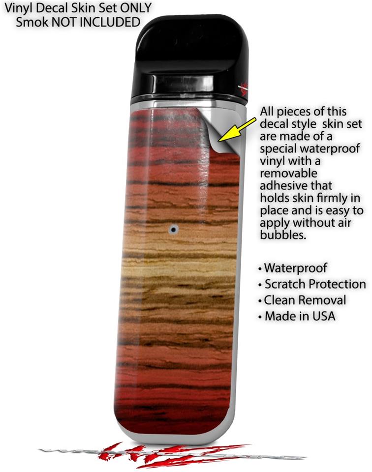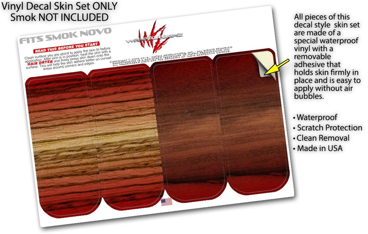 Skin Decal Wrap 2 Pack for Smok Novo v1 Exotic Wood Zebra Wood Burst Fire Red VAPE NOT INCLUDED