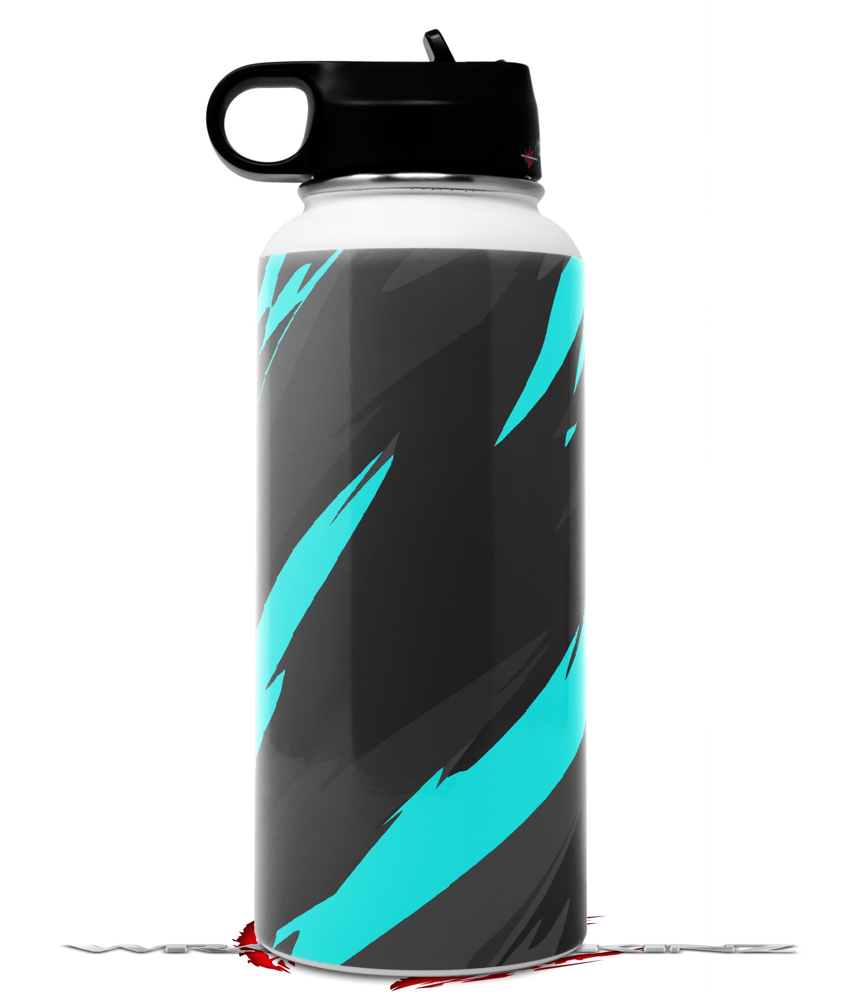 Skin Wrap Decal compatible with Hydro Flask Wide Mouth Bottle 32oz Jagged Camo Neon Teal (BOTTLE NOT INCLUDED)