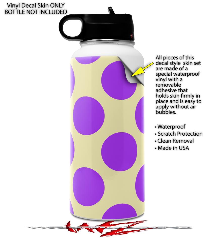 Skin Wrap Decal compatible with Hydro Flask Wide Mouth Bottle 32oz Kearas Polka Dots Purple On Cream (BOTTLE NOT INCLUDED)