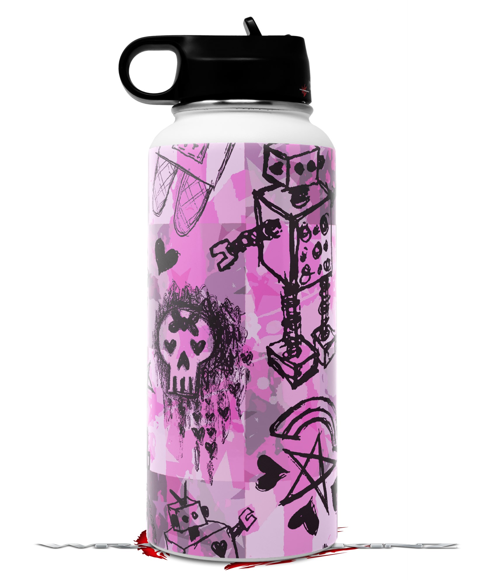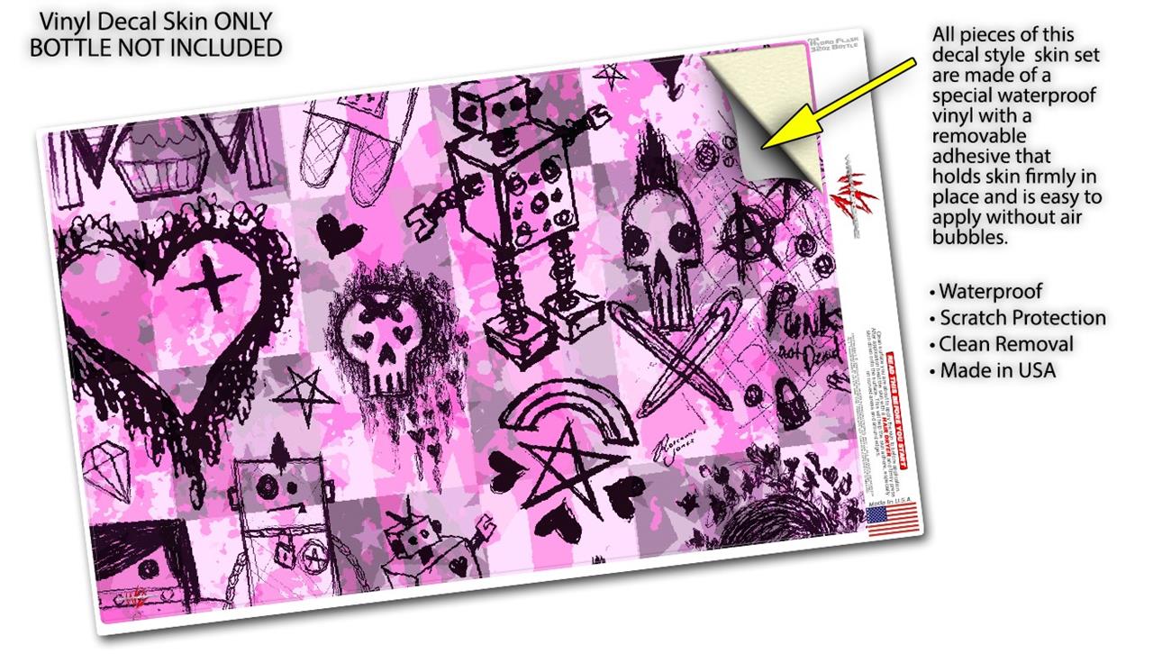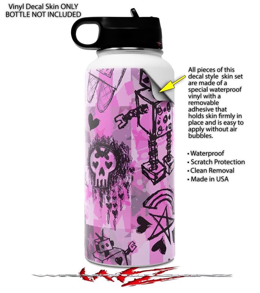 Skin Wrap Decal compatible with Hydro Flask Wide Mouth Bottle 32oz Scene Kid Sketches Pink (BOTTLE NOT INCLUDED)