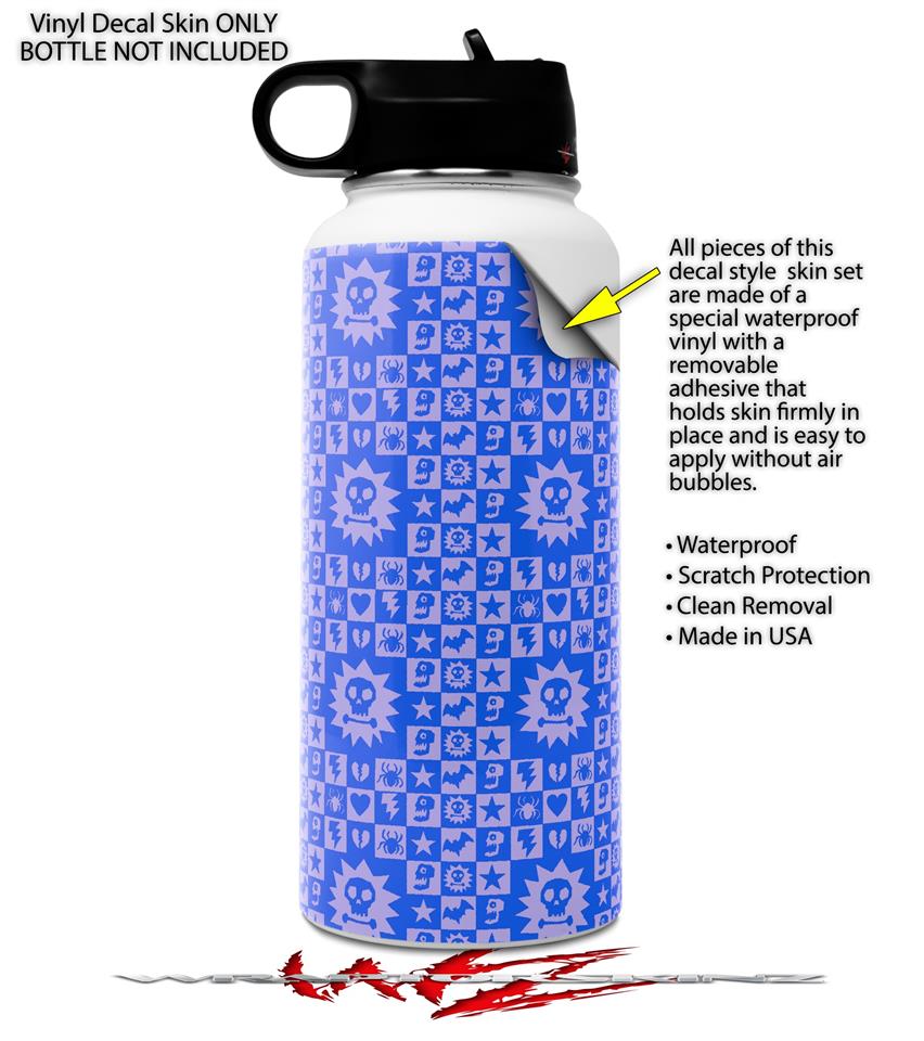 Skin Wrap Decal compatible with Hydro Flask Wide Mouth Bottle 32oz Gothic Punk Pattern Blue (BOTTLE NOT INCLUDED)