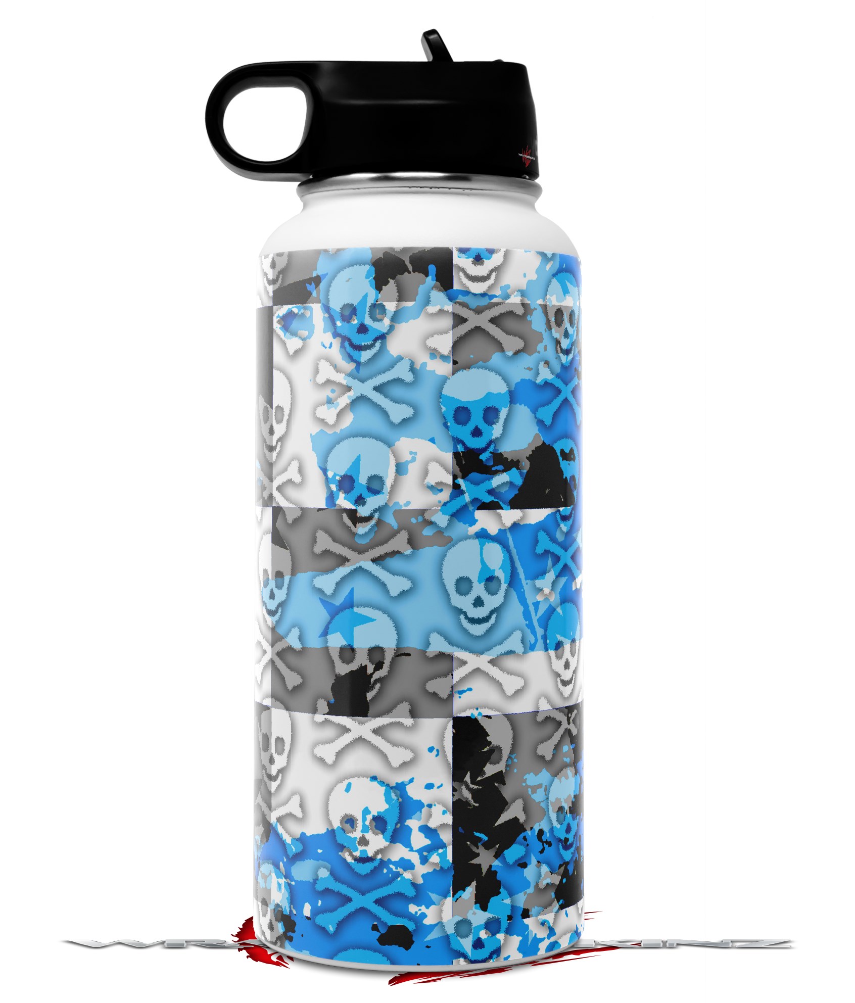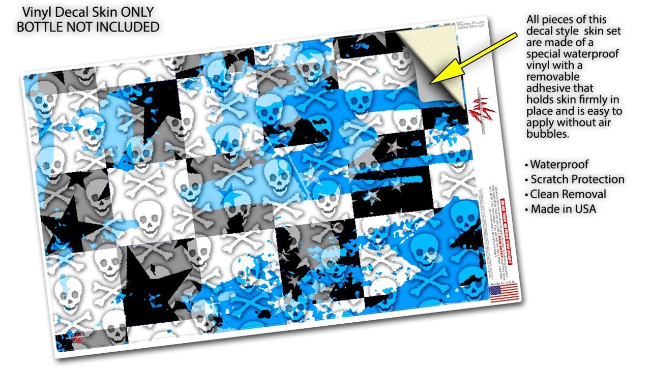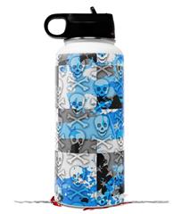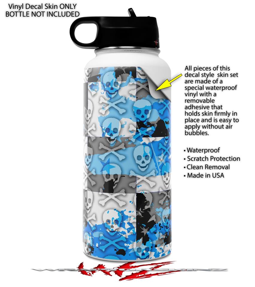 Skin Wrap Decal compatible with Hydro Flask Wide Mouth Bottle 32oz Checker Skull Splatter Blue (BOTTLE NOT INCLUDED)