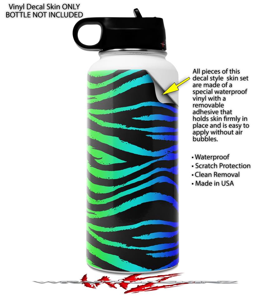 Skin Wrap Decal compatible with Hydro Flask Wide Mouth Bottle 32oz Rainbow Zebra (BOTTLE NOT INCLUDED)