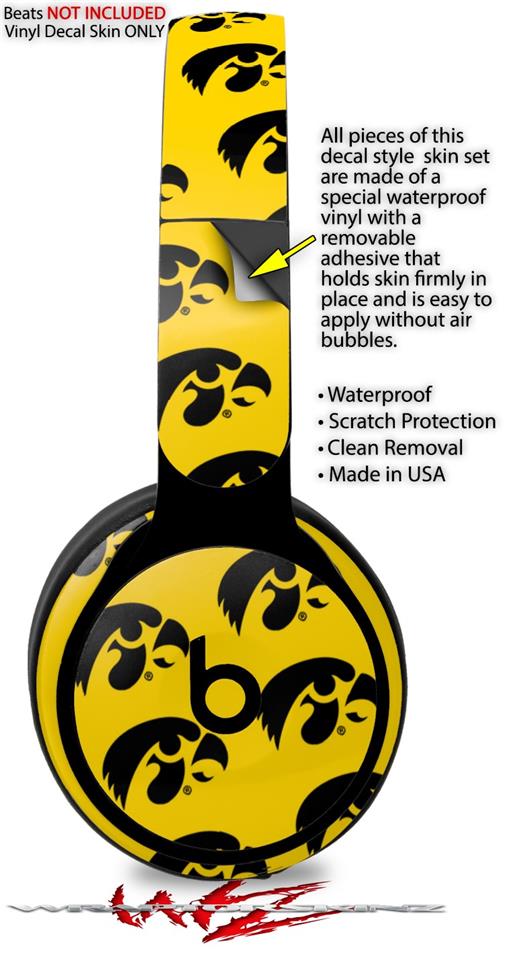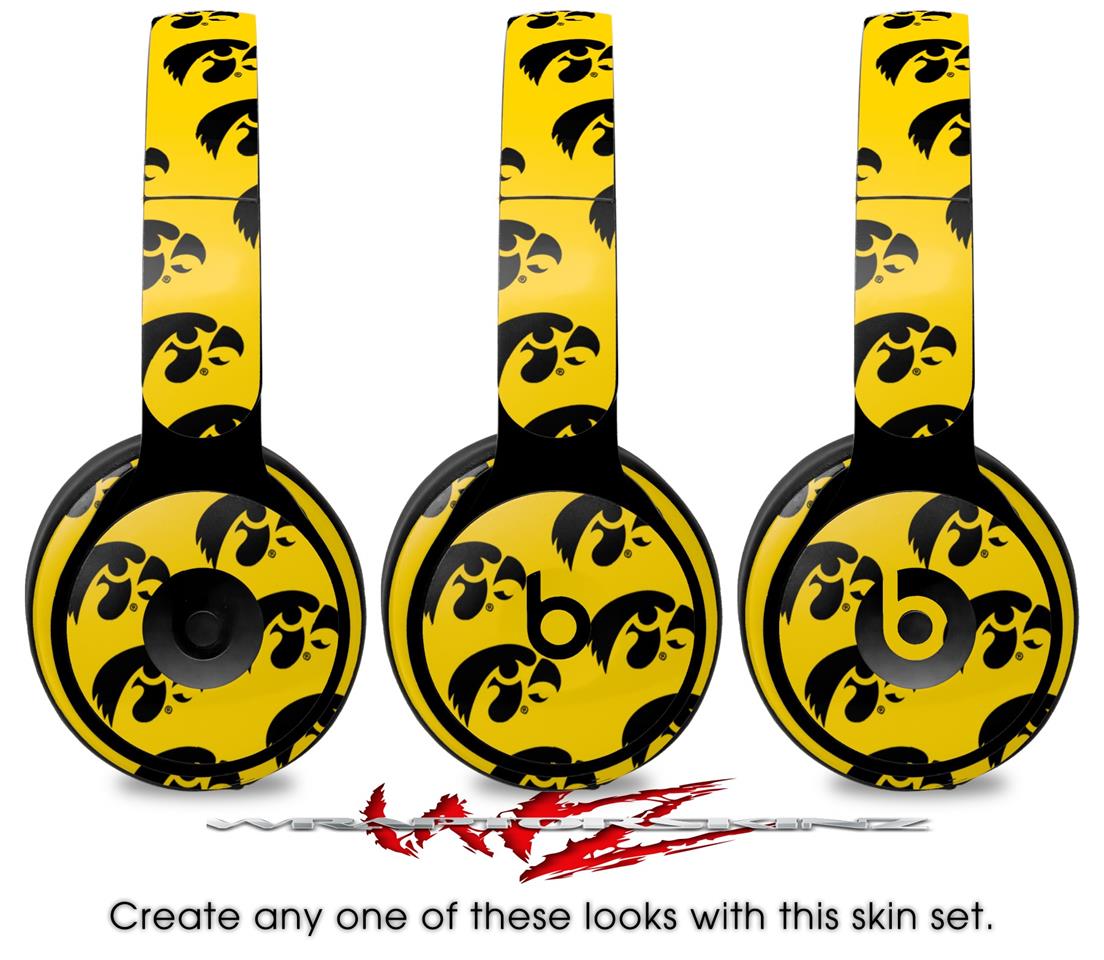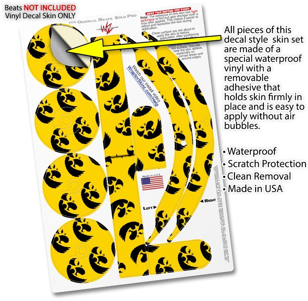 WraptorSkinz Skin Skin Decal Wrap works with Beats Solo Pro (Original) Headphones Iowa Hawkeyes Tigerhawk Tiled 06 Black on Gold Skin Only BEATS NOT INCLUDED