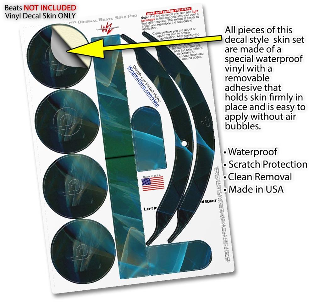 This product is in no way affiliated with or endorsed by Apple or Beats brand products. WraptorSkinz® skin wraps work with the Original Beats Solo Pro version 1 headphones. Printed using superb photo quality designs and vibrant colors printed with special fade resistant inks that last even in direct sun for years. WraptorSkinz are a composite of two layers of commercial grade materials. The bottom layer is a soft, flexible vinyl with a special removable adhesive that is easily positioned, applied without air bubbles. Next, we print the bottom layer with UV protected, fade resistant inks that deliver superb photo quality designs in vibrant colors. Finally, we bond a professional grade laminate over the entire skin adding a glossy protective finish.