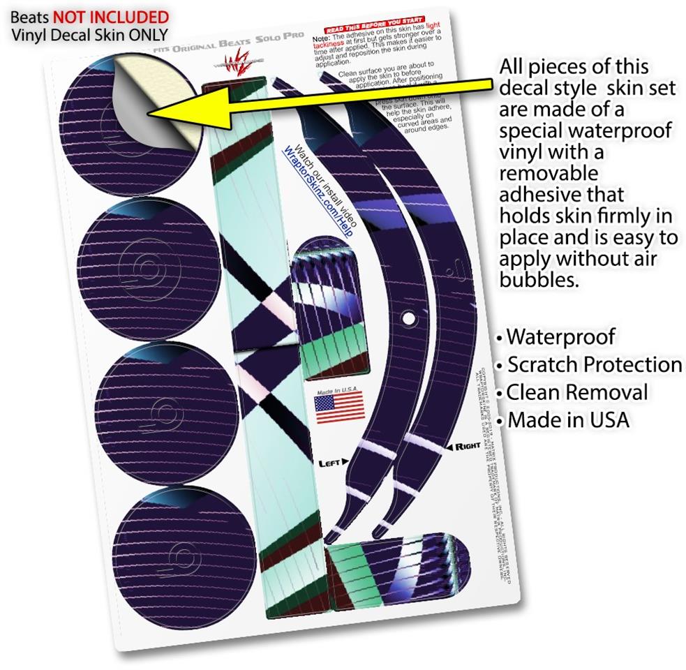 This product is in no way affiliated with or endorsed by Apple or Beats brand products. WraptorSkinz® skin wraps work with the Original Beats Solo Pro version 1 headphones. Printed using superb photo quality designs and vibrant colors printed with special fade resistant inks that last even in direct sun for years. WraptorSkinz are a composite of two layers of commercial grade materials. The bottom layer is a soft, flexible vinyl with a special removable adhesive that is easily positioned, applied without air bubbles. Next, we print the bottom layer with UV protected, fade resistant inks that deliver superb photo quality designs in vibrant colors. Finally, we bond a professional grade laminate over the entire skin adding a glossy protective finish.