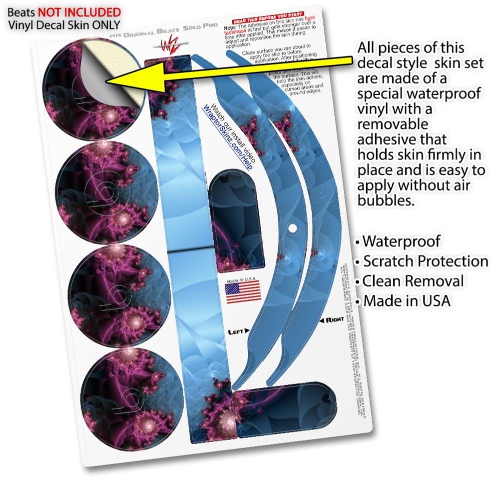 This product is in no way affiliated with or endorsed by Apple or Beats brand products. WraptorSkinz® skin wraps work with the Original Beats Solo Pro version 1 headphones. Printed using superb photo quality designs and vibrant colors printed with special fade resistant inks that last even in direct sun for years. WraptorSkinz are a composite of two layers of commercial grade materials. The bottom layer is a soft, flexible vinyl with a special removable adhesive that is easily positioned, applied without air bubbles. Next, we print the bottom layer with UV protected, fade resistant inks that deliver superb photo quality designs in vibrant colors. Finally, we bond a professional grade laminate over the entire skin adding a glossy protective finish.