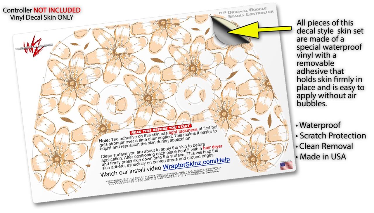 Skin Decal Wrap works with Original Google Stadia Controller Flowers Pattern 15 Skin Only CONTROLLER NOT INCLUDED