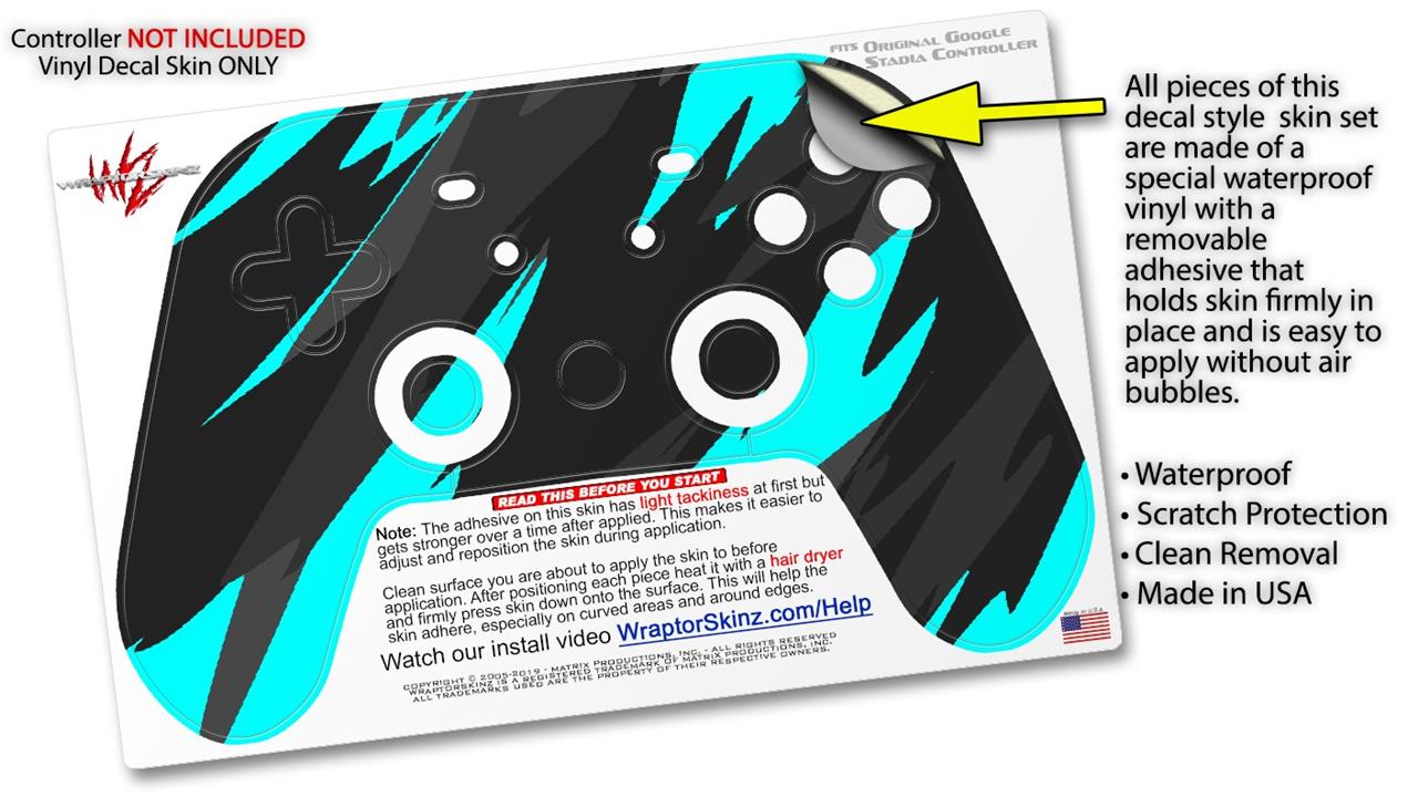 Skin Decal Wrap works with Original Google Stadia Controller Jagged Camo Neon Teal Skin Only CONTROLLER NOT INCLUDED