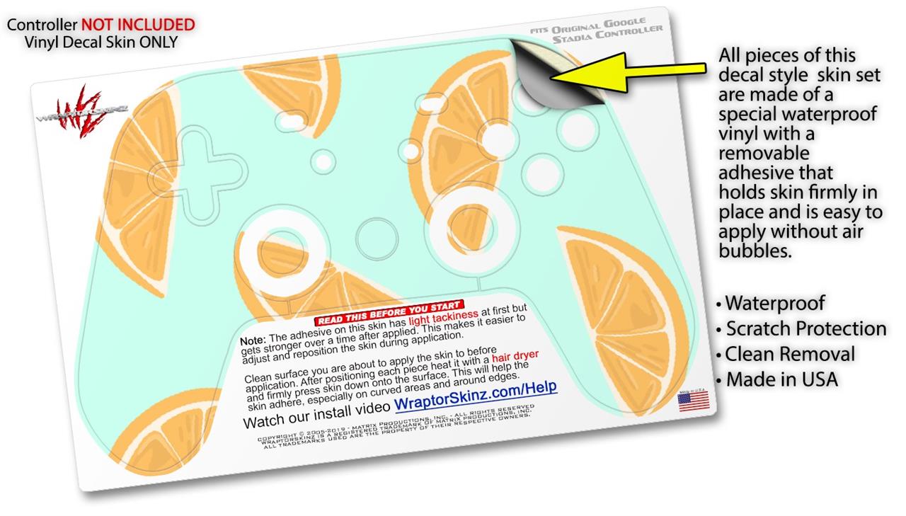 This product is in no way affiliated with or endorsed by Google. WraptorSkinz® skin wraps work with the Original Google Stadia version 1 Controller. Printed using superb photo quality designs and vibrant colors printed with special fade resistant inks that last even in direct sun for years. WraptorSkinz are a composite of two layers of commercial grade materials. The bottom layer is a soft, flexible vinyl with a special removable adhesive that is easily positioned, applied without air bubbles. Next, we print the bottom layer with UV protected, fade resistant inks that deliver superb photo quality designs in vibrant colors. Finally, we bond a professional grade laminate over the entire skin adding a glossy protective finish.