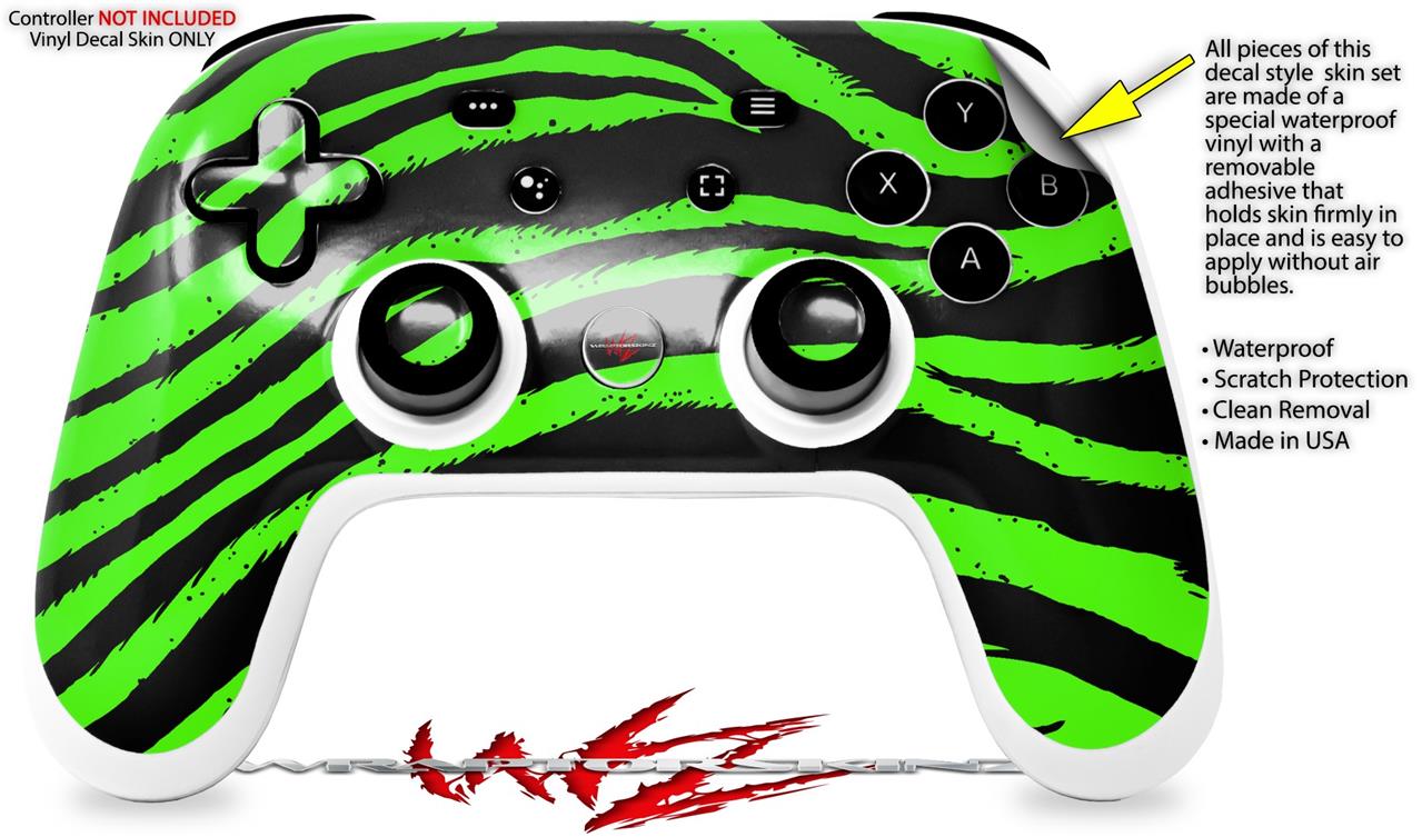 Skin Decal Wrap works with Original Google Stadia Controller Zebra Green Skin Only CONTROLLER NOT INCLUDED