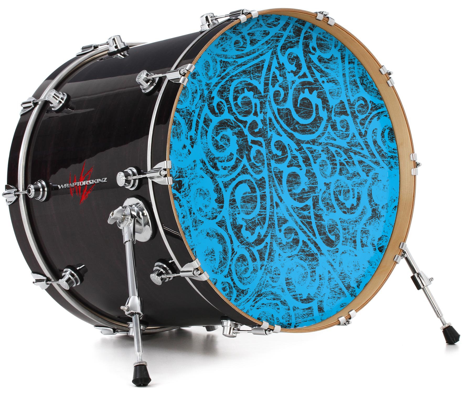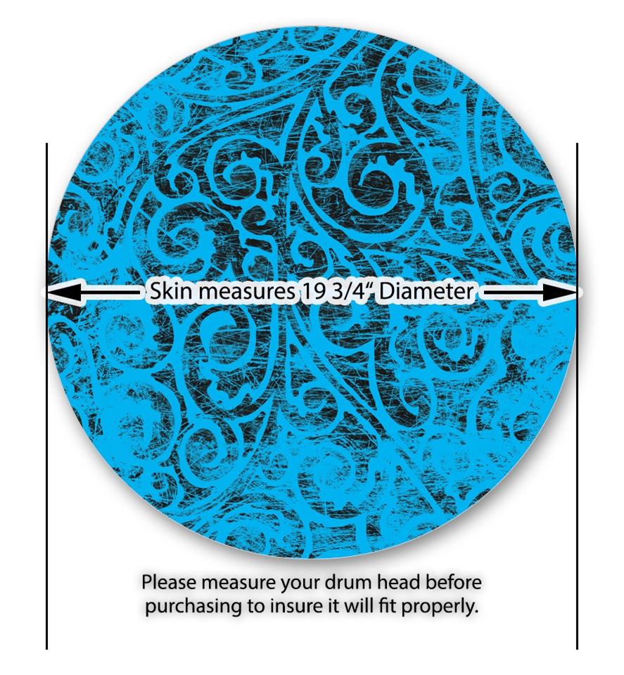 This design also available in other sizes. WraptorSkinz® skin wraps compatible with most kick drum heads. Printed using superb photo quality designs and vibrant colors printed with special fade resistant inks that last even in direct sun for years. WraptorSkinz are a composite three layer commercial grade materials vinyl. The bottom layer is a air release, grey block out removable adhesive that hides existing graphics on the drum head and is easily applied without air bubbles. The middle layer is a flexible vinyl printed with UV protected, fade resistant inks that deliver superb photo quality designs in vibrant colors. Finally, we bond a professional grade laminate over the entire skin adding a glossy protective finish.