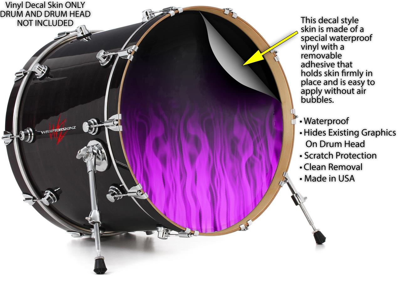 Decal Skin works with most 24" Bass Kick Drum Heads Fire Flames Purple - DRUM HEAD NOT INCLUDED