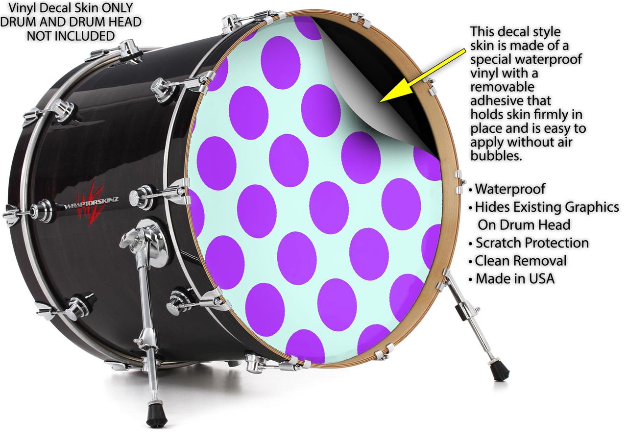 Decal Skin works with most 24" Bass Kick Drum Heads Kearas Polka Dots Purple And Blue - DRUM HEAD NOT INCLUDED