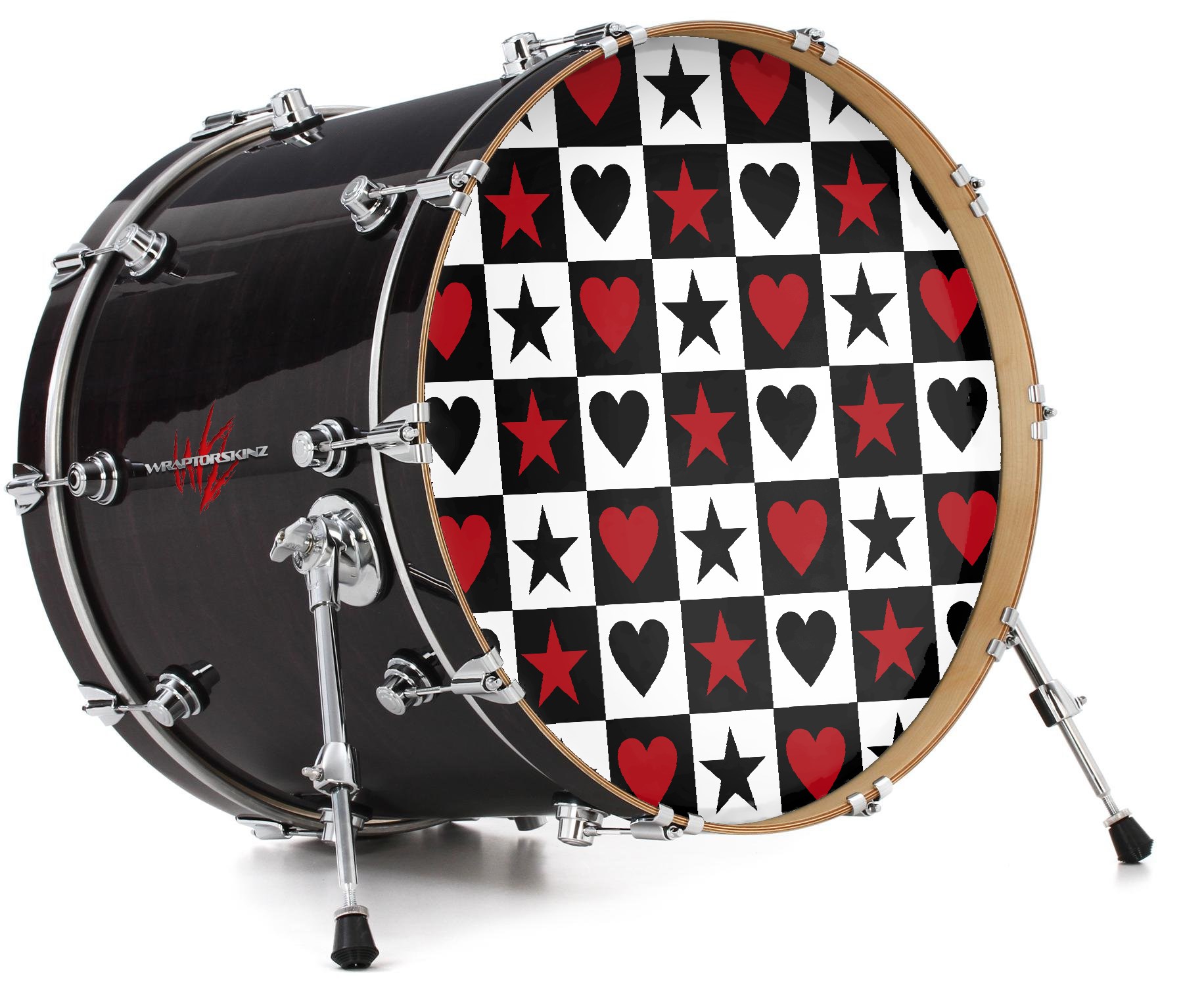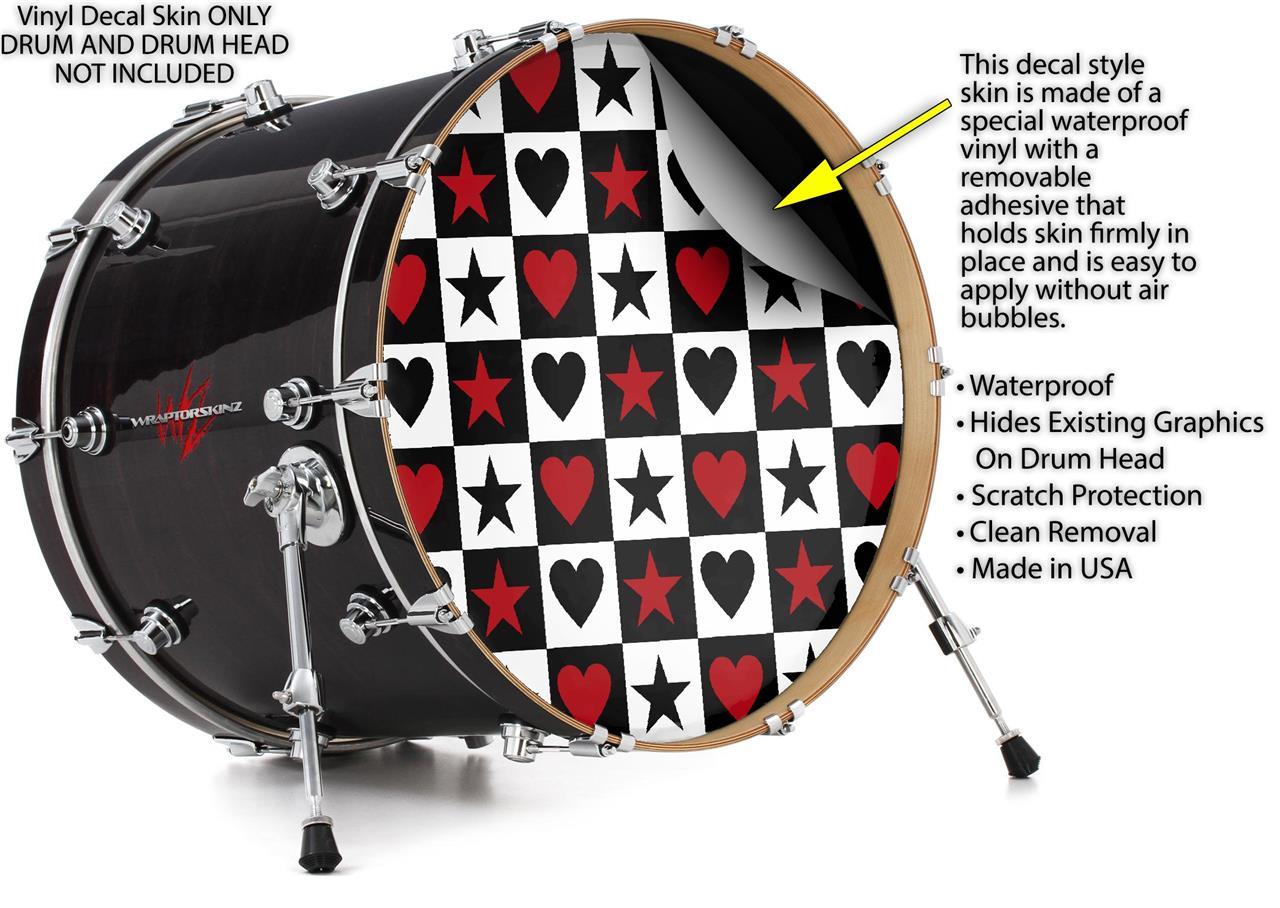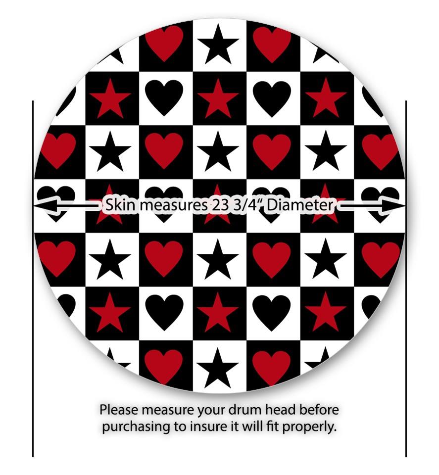 Decal Skin works with most 24" Bass Kick Drum Heads Hearts and Stars Red - DRUM HEAD NOT INCLUDED
