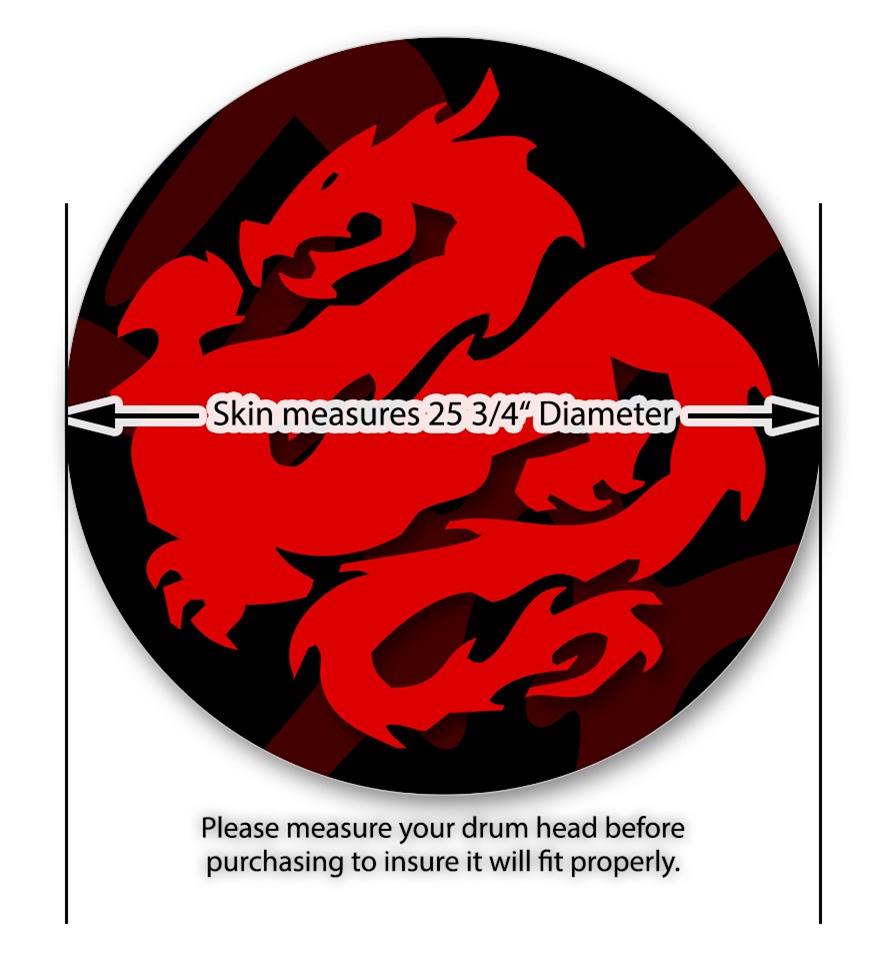 Decal Skin works with most 26" Bass Kick Drum Heads Oriental Dragon Red on Black - DRUM HEAD NOT INCLUDED