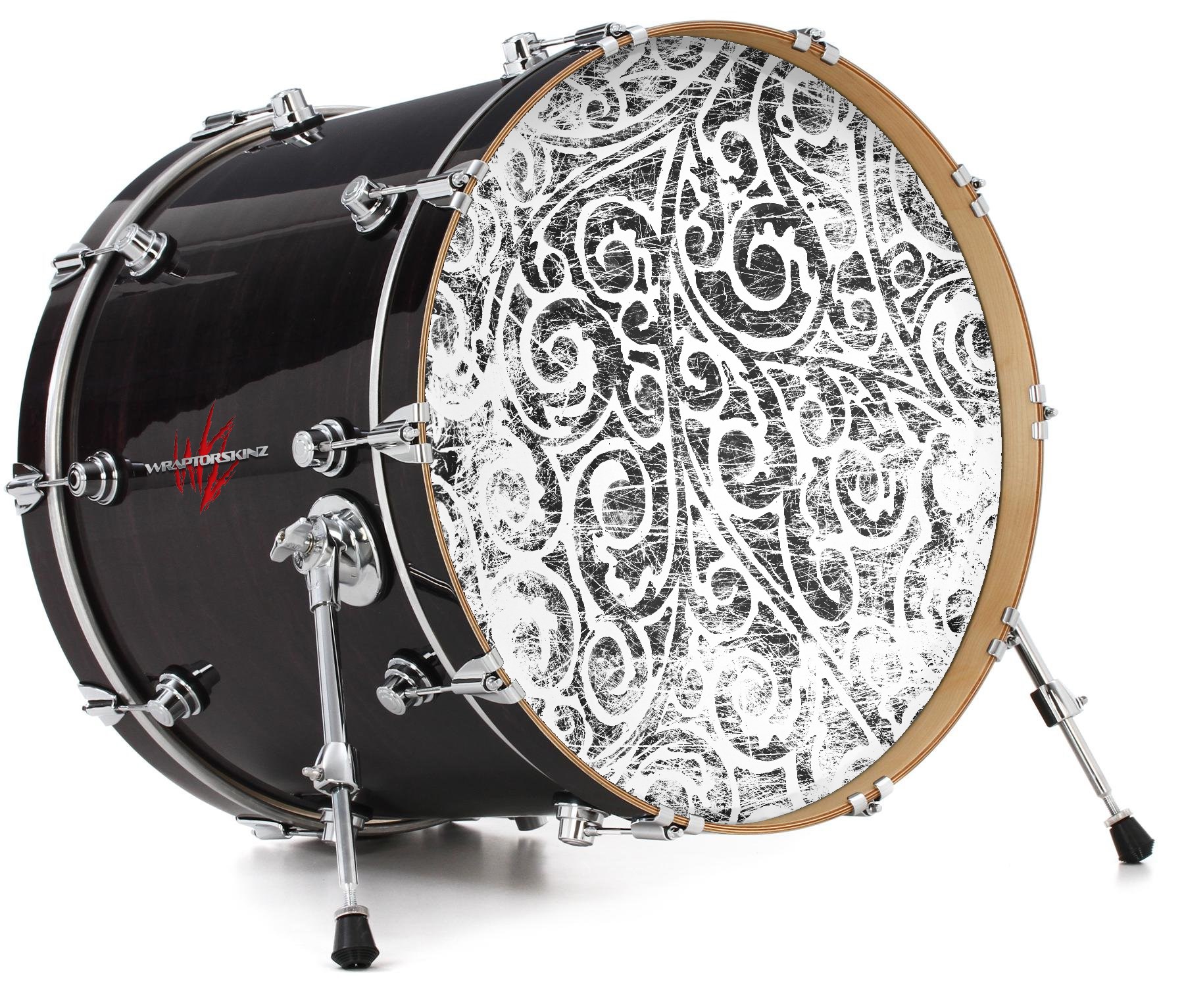 Decal Skin works with most 26" Bass Kick Drum Heads Folder Doodles White - DRUM HEAD NOT INCLUDED