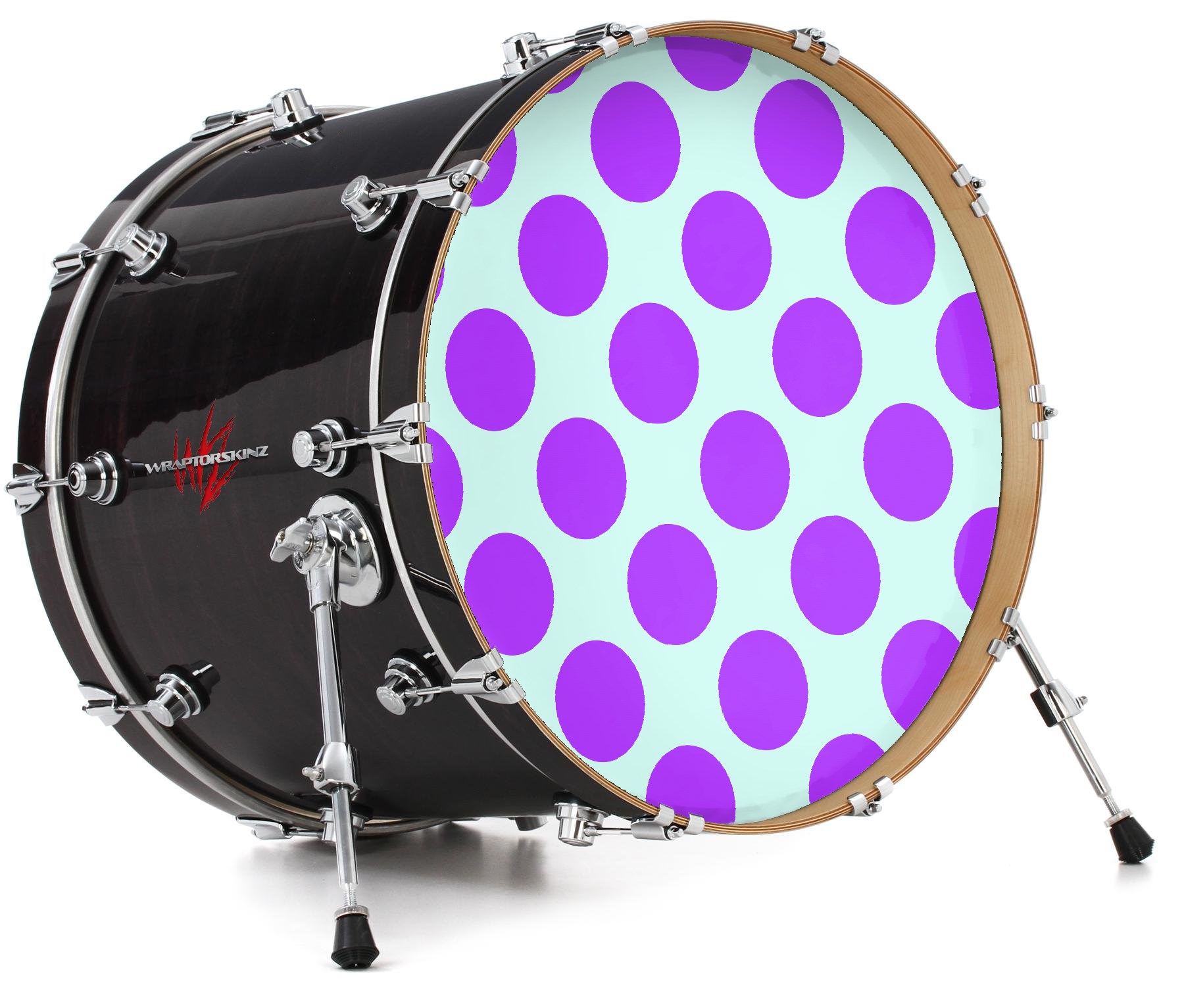 Decal Skin works with most 26" Bass Kick Drum Heads Kearas Polka Dots Purple And Blue - DRUM HEAD NOT INCLUDED