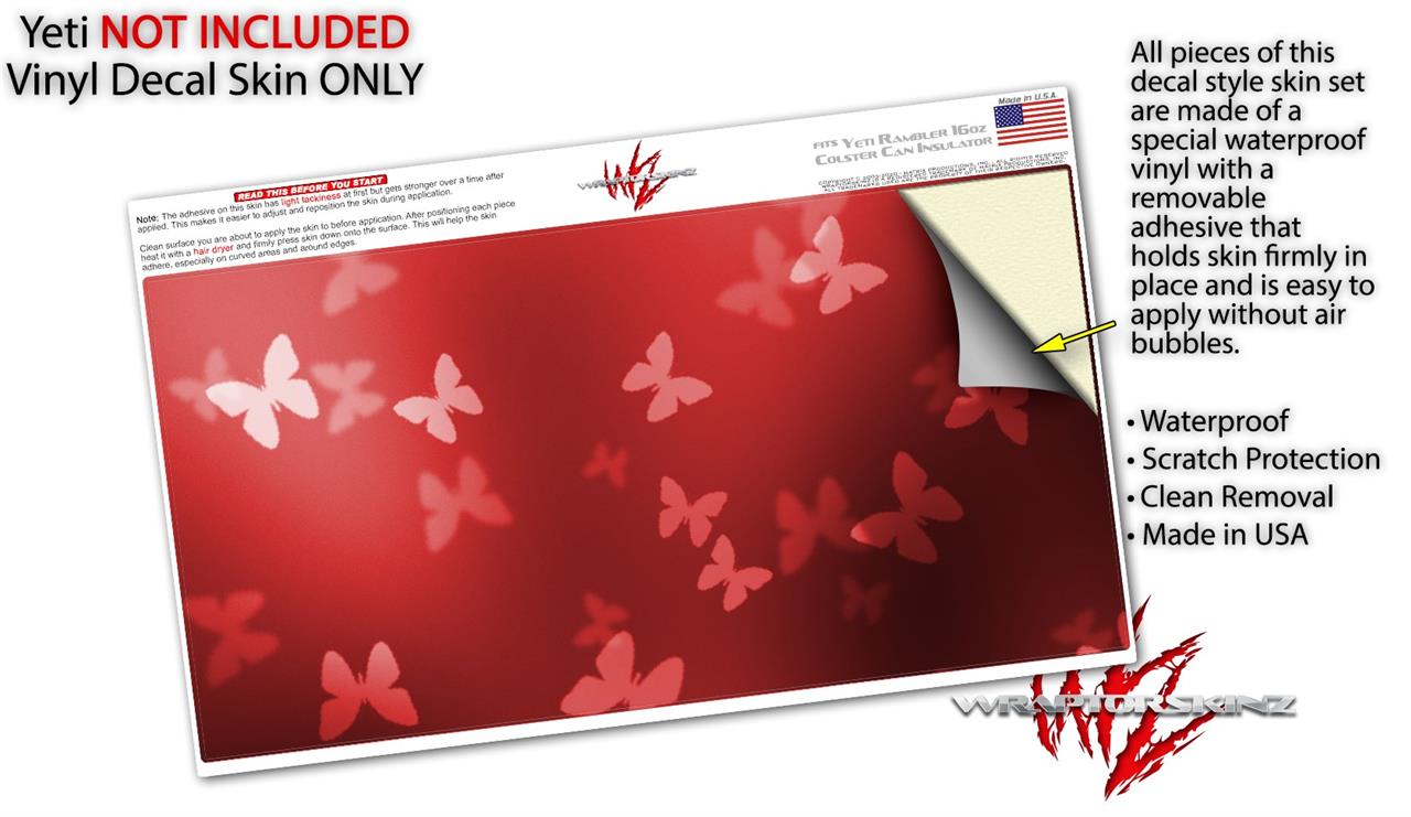 WraptorSkinz Skin Decal Wrap compatible with Yeti 16oz Tall Colster Can Cooler Insulator Bokeh Butterflies Red (COOLER NOT INCLUDED)