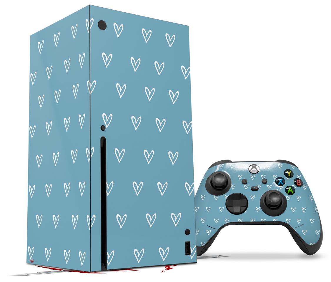 WraptorSkinz Skin Wrap compatible with the 2020 XBOX Series X Console and Controller Hearts Blue On White (XBOX NOT INCLUDED)